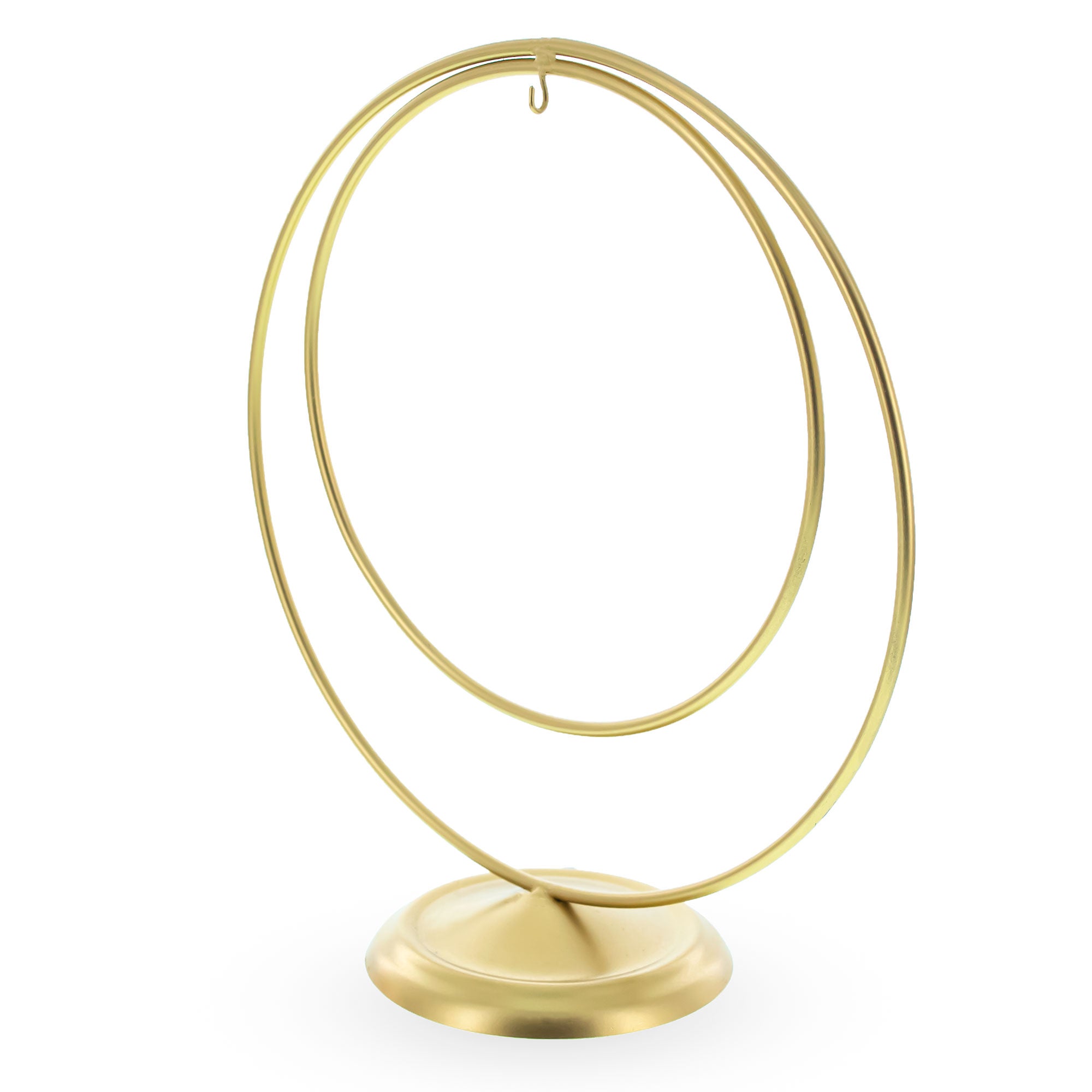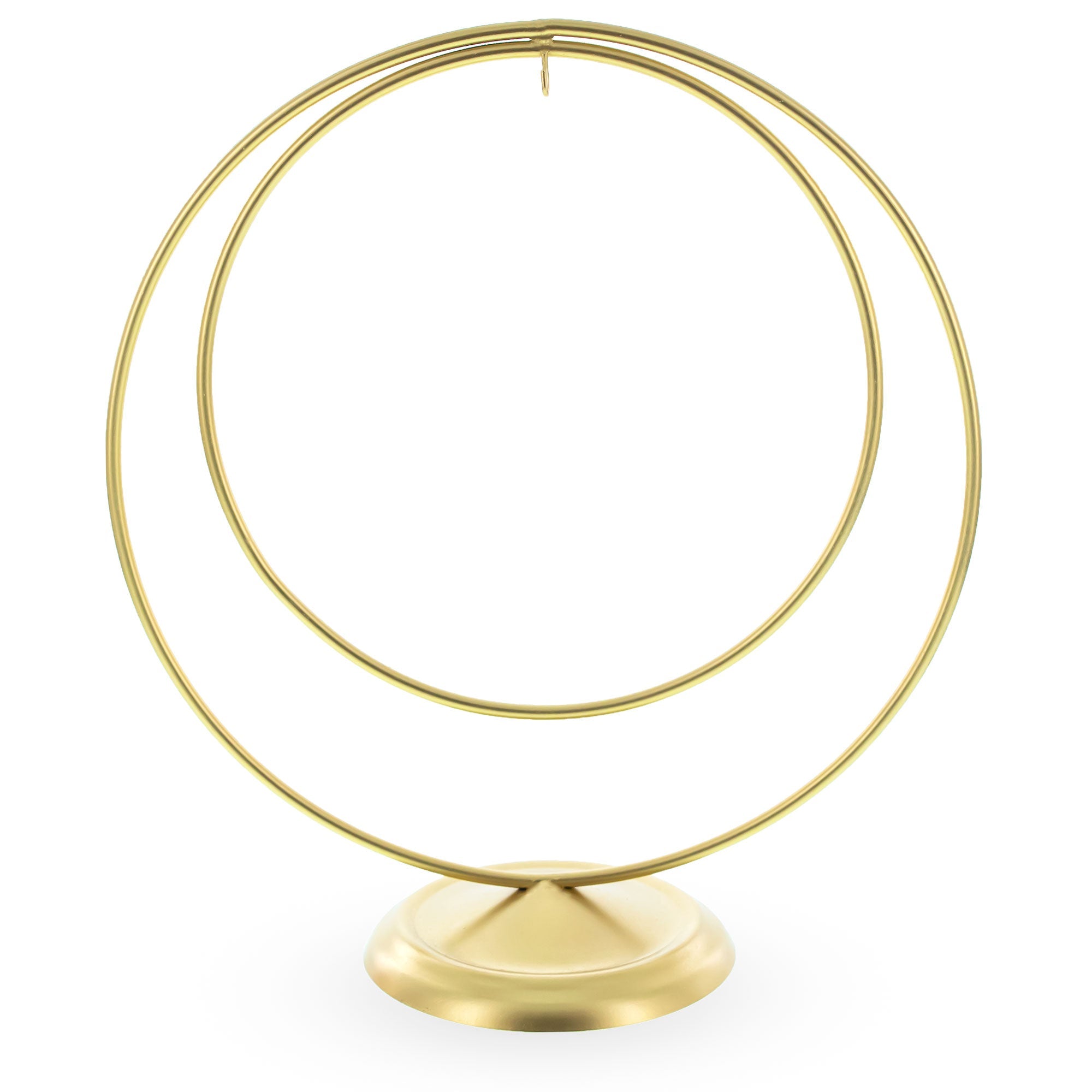 Showcase your favorite ornaments in modern elegance with this 8.2-inch double circle display stand. Crafted from smooth gold-coated metal, its minimalist design features two concentric hoops that create a striking geometric silhouette. The balanced frame holds your ornament securely at center stage, making it perfect for highlighting delicate baubles, crystals, or keepsakes. A wide, rounded base ensures stability on shelves, mantels, or countertops. Ideal for holiday décor, special gifts, or year-round displays, this stand blends contemporary style with timeless simplicity.