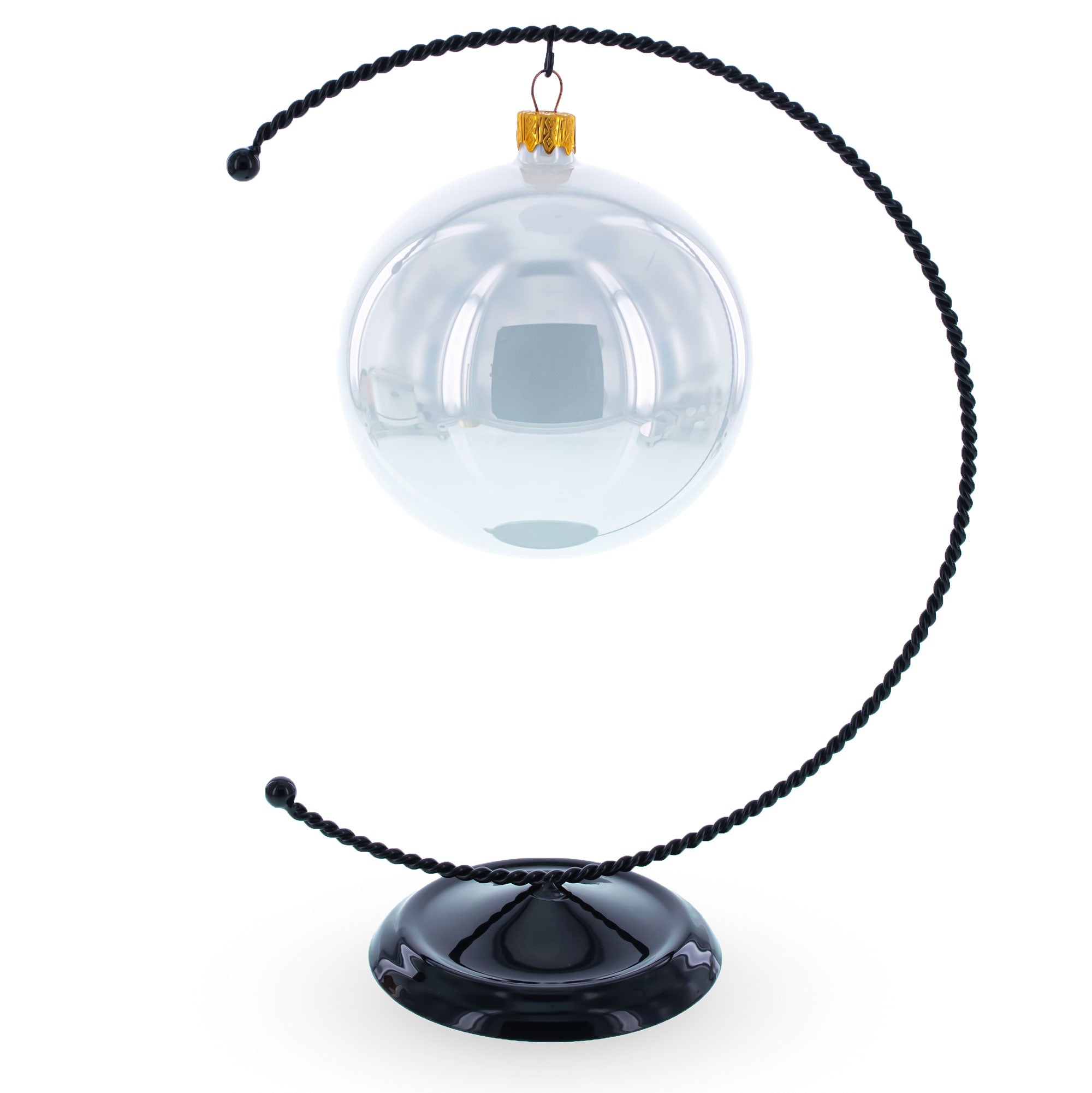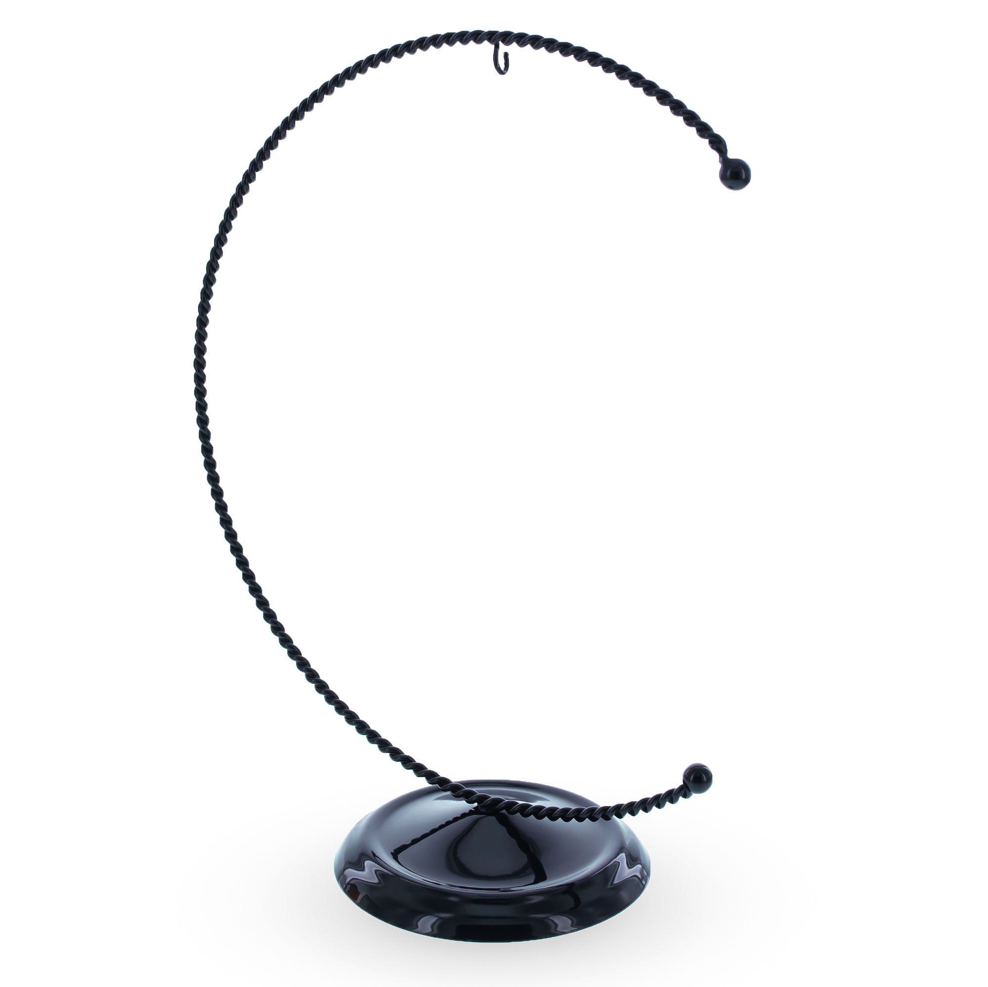 Display your favorite ornaments with a touch of handcrafted elegance using this twisted wire crescent ornament display stand. Featuring a gracefully arched design made from black painted, rope-style wire, this stand offers a charming twist on a classic crescent silhouette. The detailed spiral texture adds visual interest while the central hook holds ornaments, crystals, or small hanging décor securely in place. A smooth, weighted base ensures balance and stability on any flat surface.