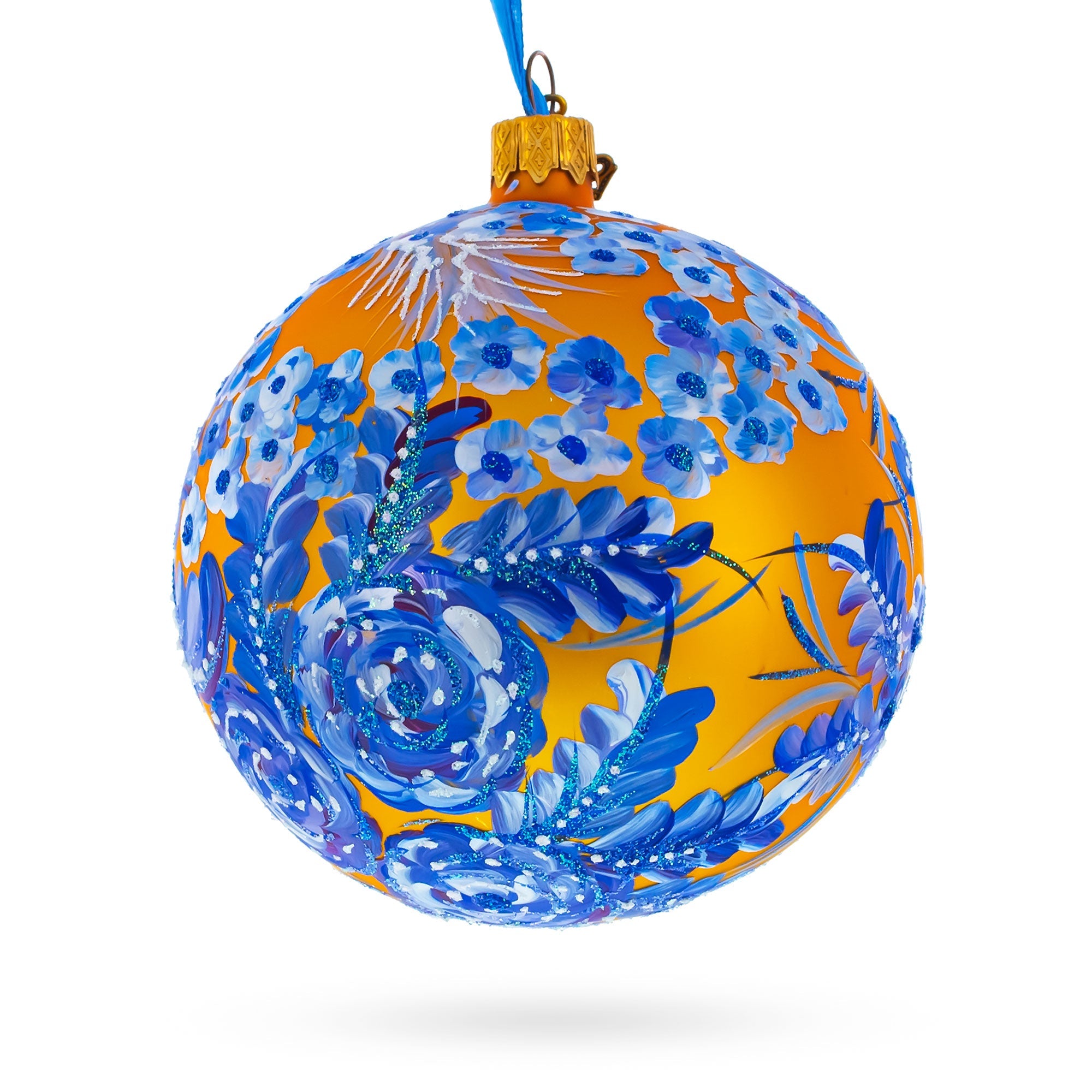 Firebird Amidst Hyacinth Flowers Glass Ball Christmas Ornament