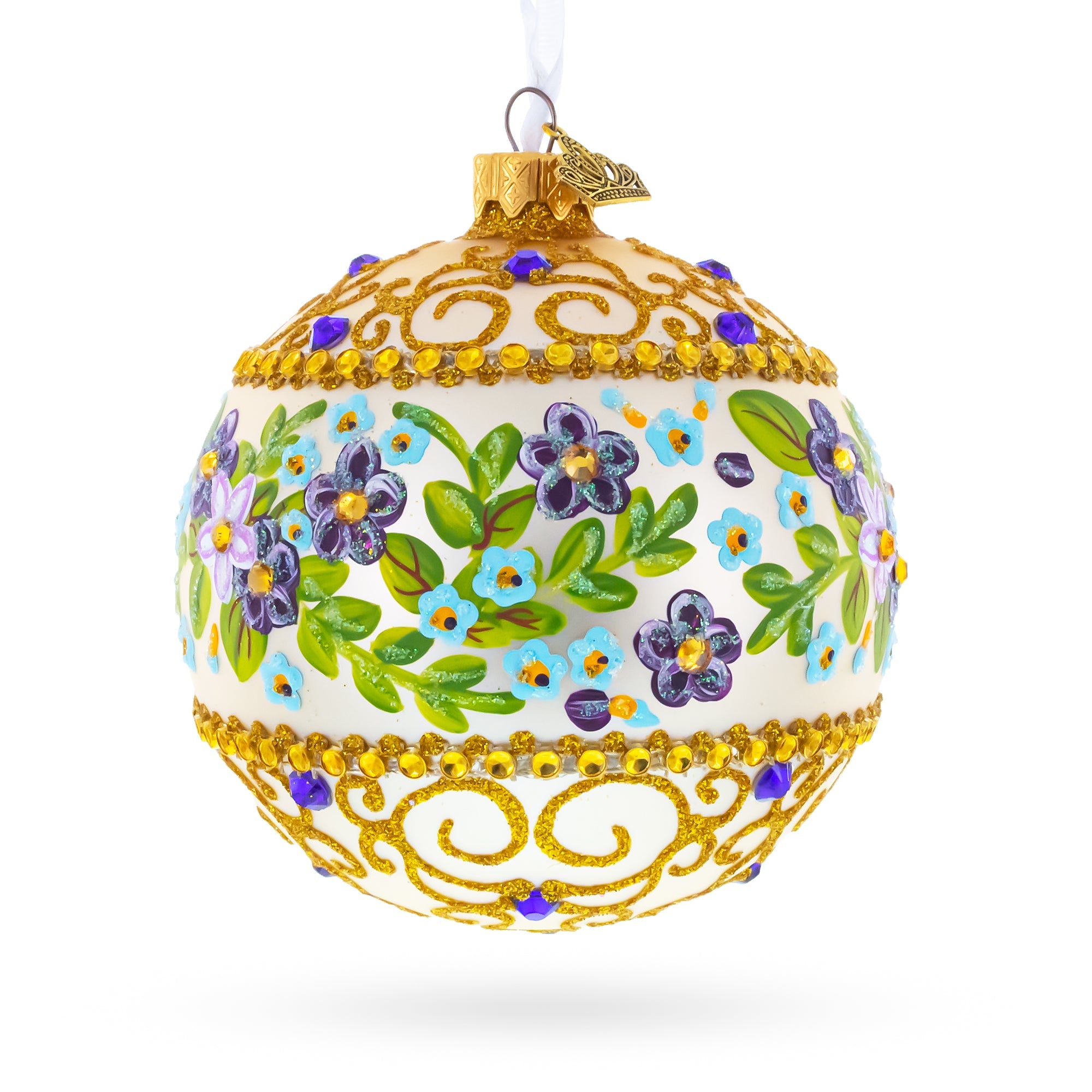 Flowers Swirl Glass Ball Christmas Ornament 4 Inches