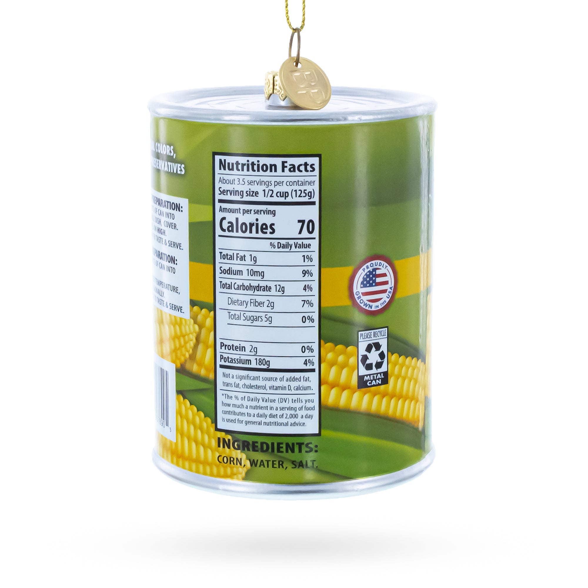 Golden Kernel Sweet Corn Can Glass Christmas Ornament