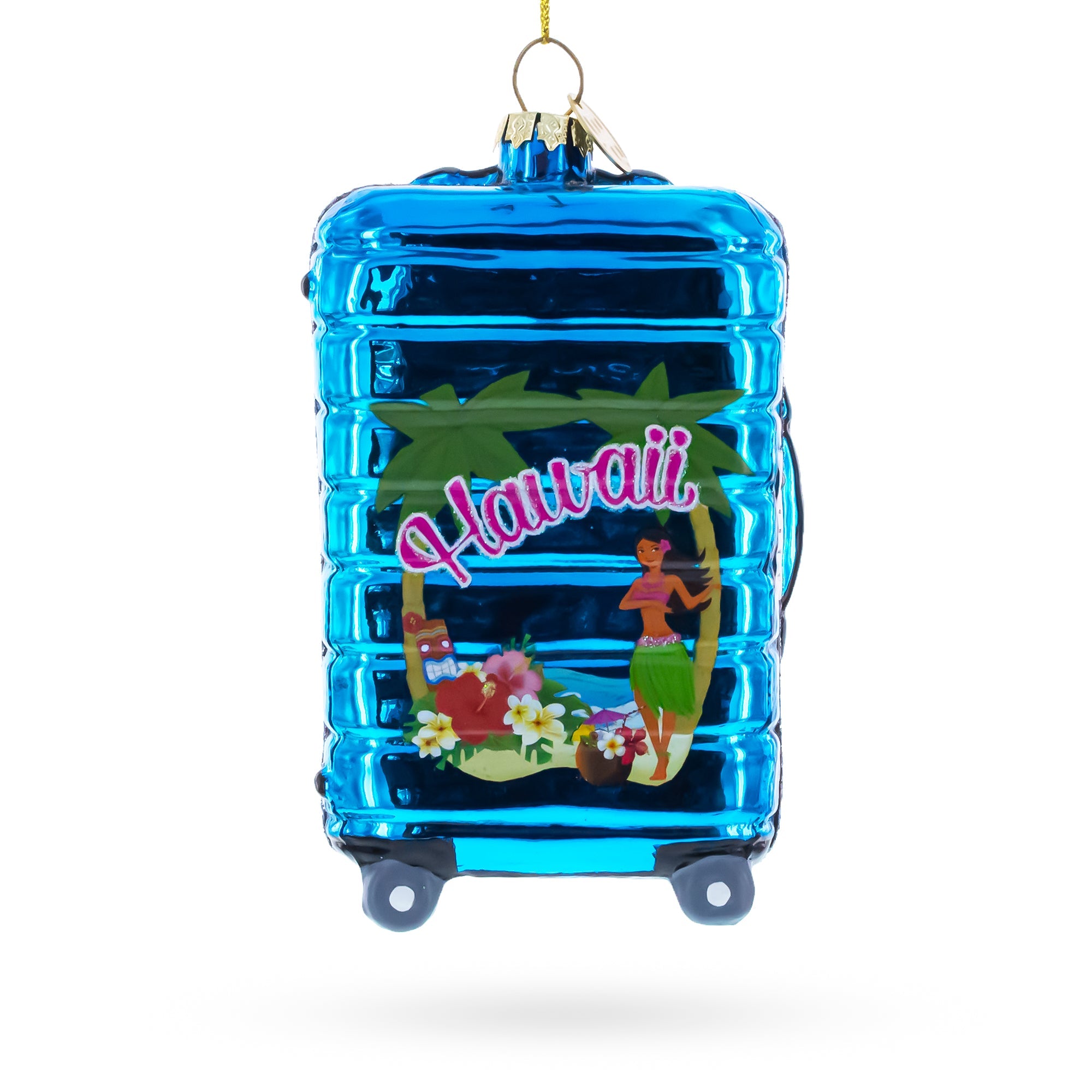 Hawaii Travel Suitcase Glass Christmas Ornament