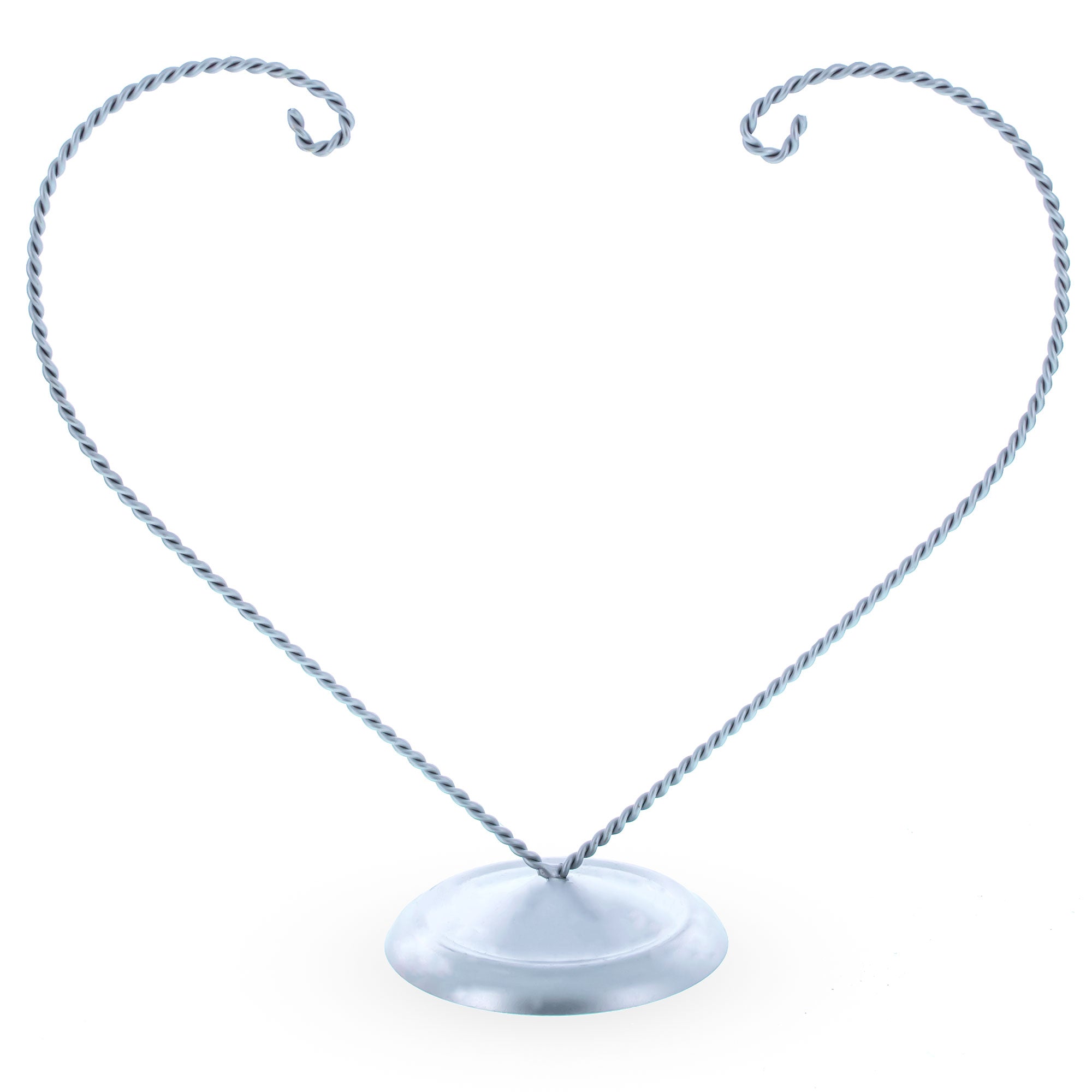 Add a touch of handcrafted charm to your décor with this 9-inch open heart ornament display stand. Crafted from silver-coated twisted wire, the heart-shaped frame features elegant curled ends that form an airy, open-top design. Perfect for showcasing ornaments, crystals, or keepsakes, it offers a romantic and whimsical touch to any space. The smooth, weighted base provides stability while complementing the graceful lines of the wire frame. Ideal for Valentine’s Day, weddings, anniversaries, or everyday displays, this unique stand brings warmth and character to your decorative collection.