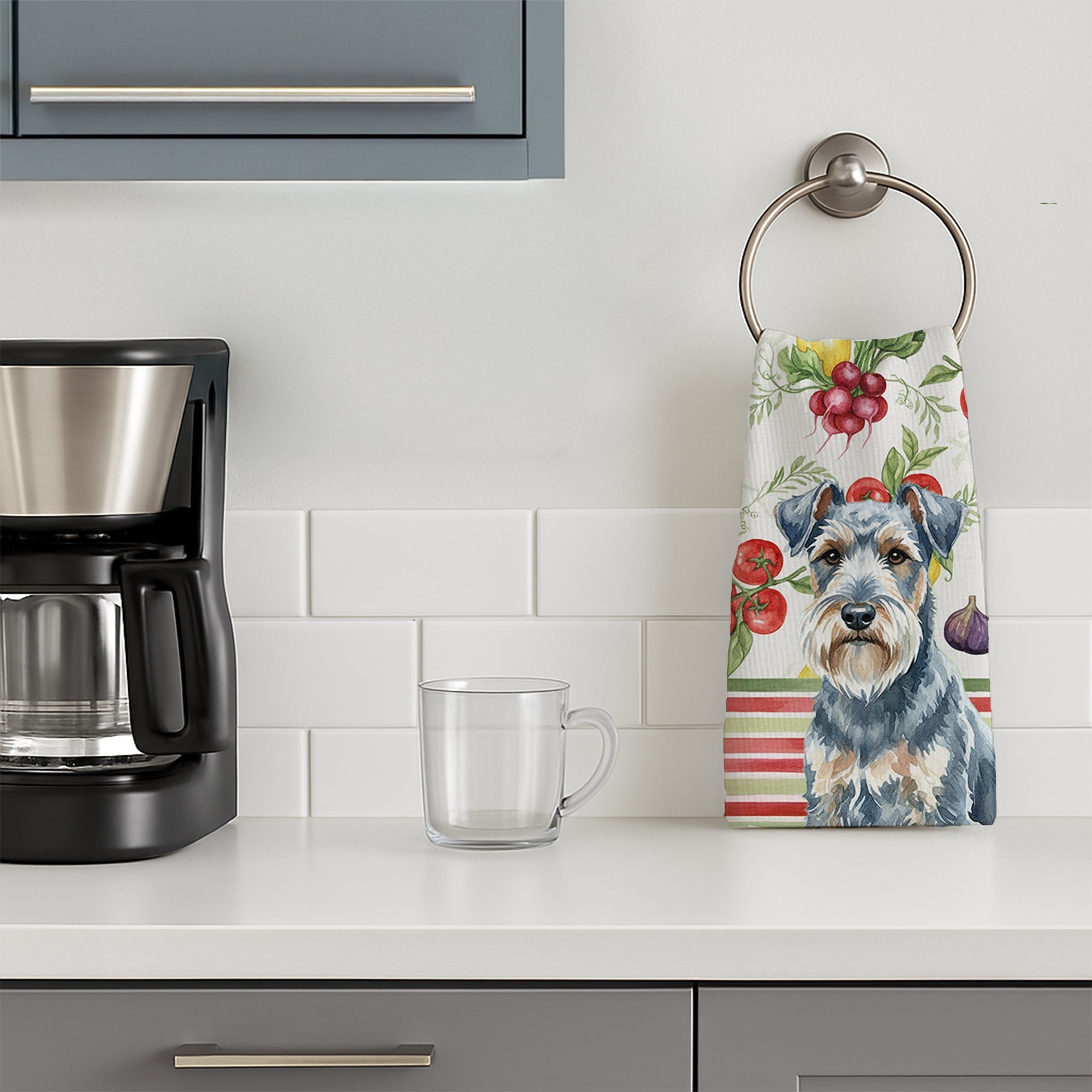Shown here is the Blue Lakeland Terrier Vegetables Kitchen Towel from Caroline's Treasures featuring artwork of a Lakeland Terrier in a Everyday design. The detailed illustration and vibrant colors make it a standout accent that celebrates both seasonal style and love for the subject. This image features a vibrant watercolor vegetable pattern with tomatoes, lemons, artichokes, figs, radishes, and leafy greens arranged in a repeating design, paired with classic red and green stripes. The bright, garden-fresh palette creates a cheerful, farmhouse-inspired look that feels lively, welcoming, and perfect for kitchen décor. Everyday décor celebrates personal style and the small moments that make a house feel like home. Thoughtful designs add warmth and personality that can be enjoyed year-round. Bring cozy everyday charm to your sink or powder room with a plush velour towel featuring original watercolor artwork. The front is a soft, color-rich minky polyester that polishes glassware to a brilliant shine; the back is 100% white cotton terry loop for quick absorbency on hands, dishes, and counters. Artwork is dyed into the fibers for lasting color that won’t crack or peel. Finished edges keep the shape wash after wash. Size: 15" x 25". Machine wash; tumble dry low. Designed and printed in the USA. Perfect for: Kitchen counters, ovens, and towel bars, everyday drying and cleanup, -themed kitchens, or year-round use for Lakeland Terrier lovers. Lakeland Terriers are confident dogs known for their bold personality and alert nature. This classic terrier breed is admired for its courage, intelligence, and independence. Makes a heartfelt gift for: Lakeland Terrier owners, lovers, Everyday gifts, pet parents, friends who adore their Lakeland Terrier, or anyone celebrating .