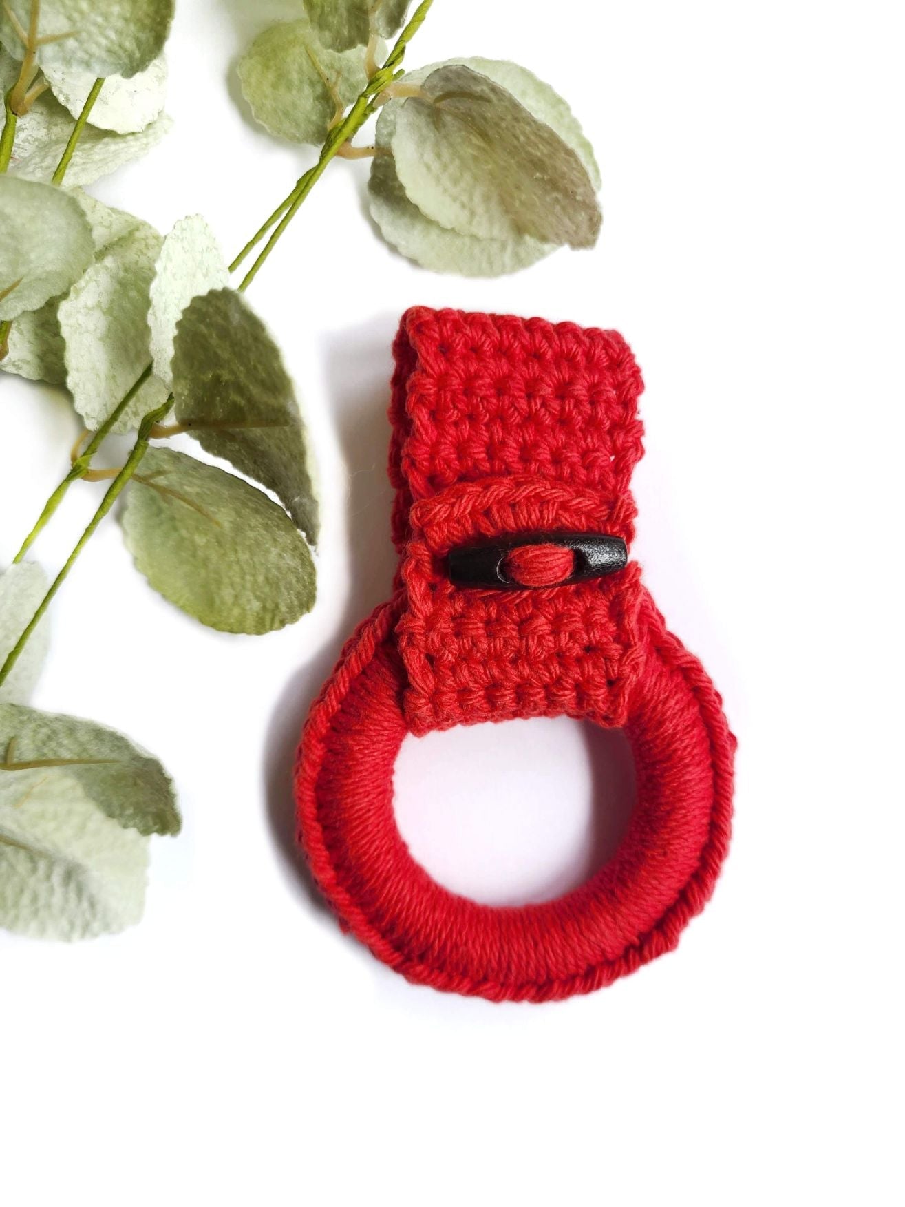 Keep your kitchen towel in place and match your kitchen decor effortlessly! Change up your kitchen towels to match all the seasons and holidays as they come! Simply take the kitchen towel out of the ring and place a new one into the kitchen towel ring holder! It is as easy as that. The Kitchen towel rings rarely need to be washed but they are washer/dryer safe since they are made from 100% cotton threads. Now this item is in the unique accessories collection because of its modern look and functional usage! This makes a lovely house warming gift or Christmas gift for someone close to you.