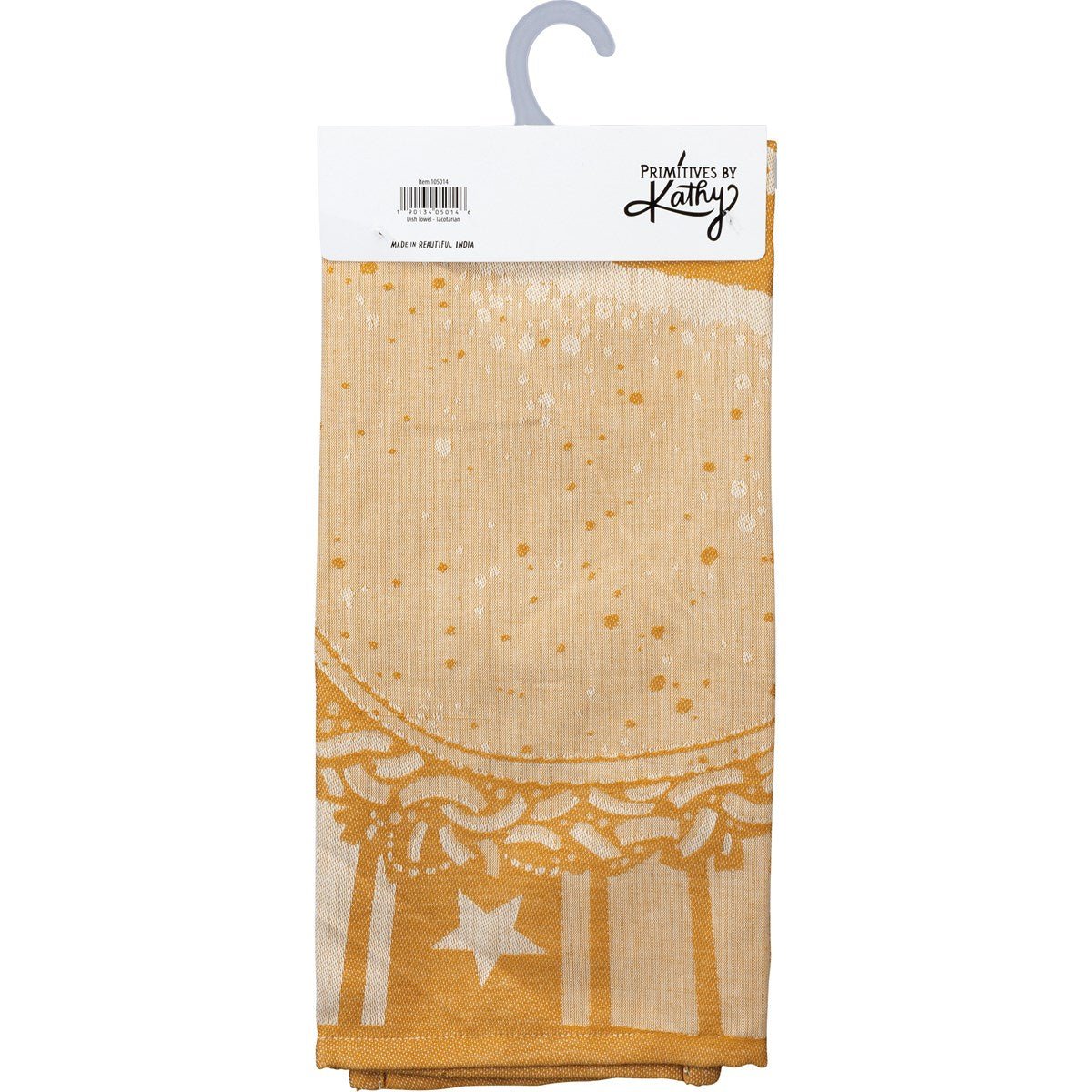Brighten up your kitchen with the Tacotarian woven jacquard dish towel, featuring a taco and stars design with a touch of snarkiness. This ultra-soft and absorbent cotton towel measures 20" x 28" and is machine-washable, making it the perfect gift for friends who love a good laugh while they cook. Made by Primitives by Kathy, this funny dish towel with saying is both practical and giftable.