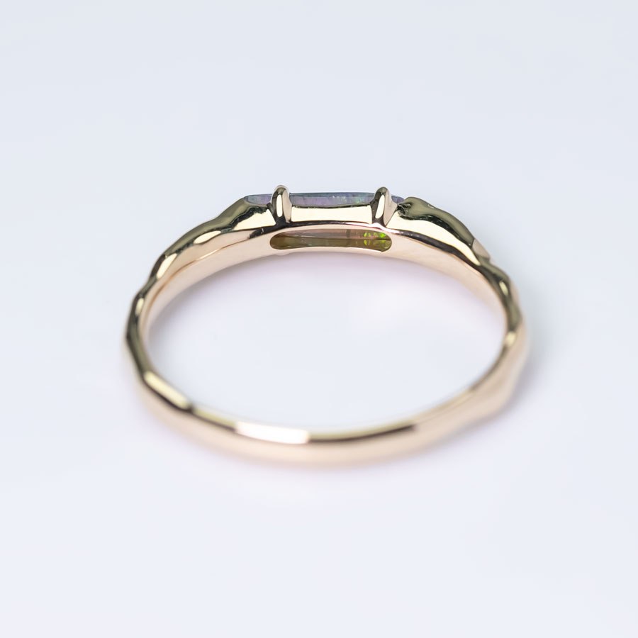 14K Yellow Gold Band with Black Opal Engagement Ring