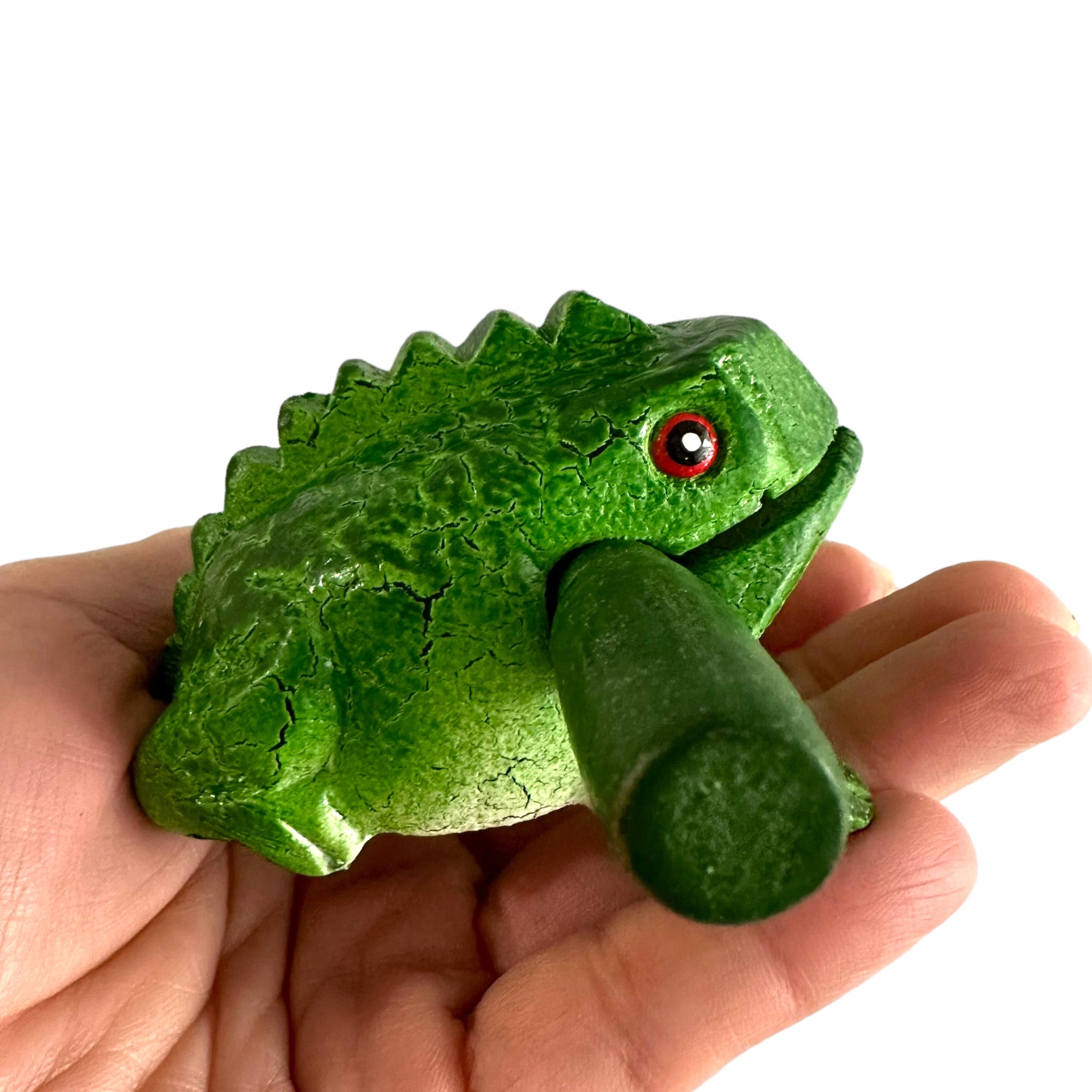 You can enjoy the soothing sound of a frog any time, and anywhere! Completely unique, the wooden croaking frog really does sound as it does in nature when you gently use the small wooden mallet and stroke its back, enabling it to make a croaking, “ribbit ribbit” sound. The wooden croaking frog is completely handmade and uniquely constructed in Thailand, covered in detail and constructed with quality craftsmanship. Rest the mallet in the mouth of the frog for safe-keeping and remove it when you are ready to play. The wooden croaking frog makes a great gift for frog lovers of all ages; or for children who express an interest in animals, music, or simply need to keep their hands busy. After all, the soothing sound of a frog beats the beating of a drum or strumming of a guitar! Plus, it’s affordably priced and makes a great collector’s item for all to enjoy for years to come.