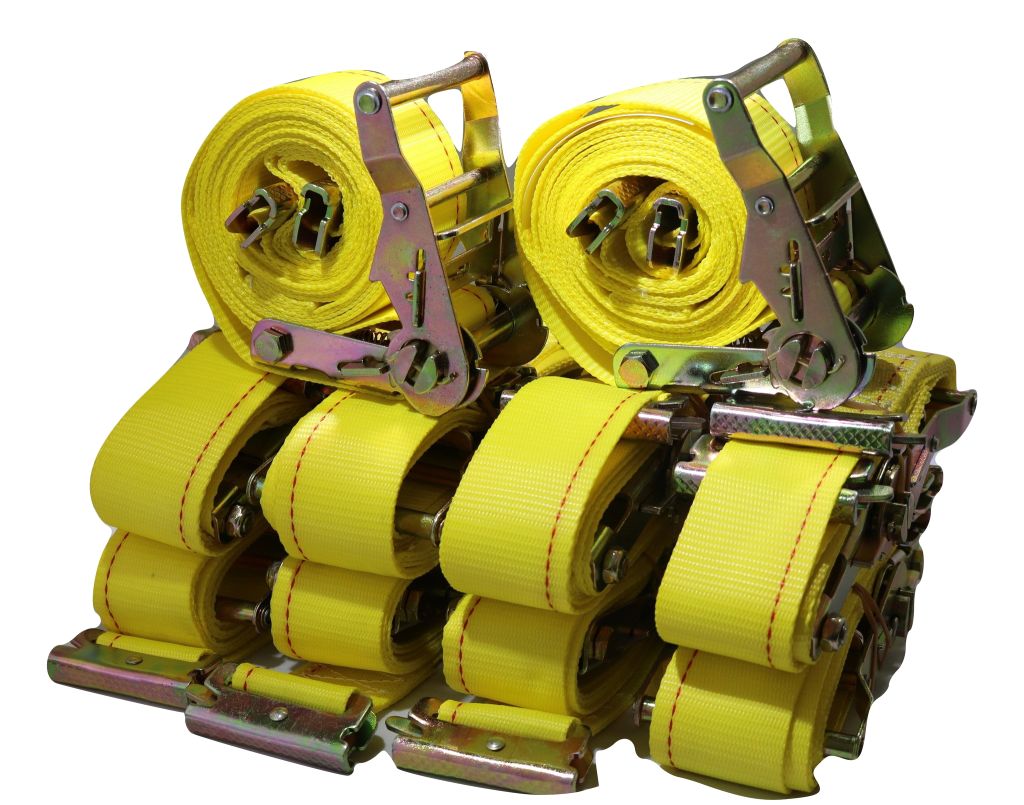 - 2” Ratchet and Cam Buckle Straps for Track Securements:Fixed Ends come 4 ft. as Industry Standard but can be Sewn Any Length By Request