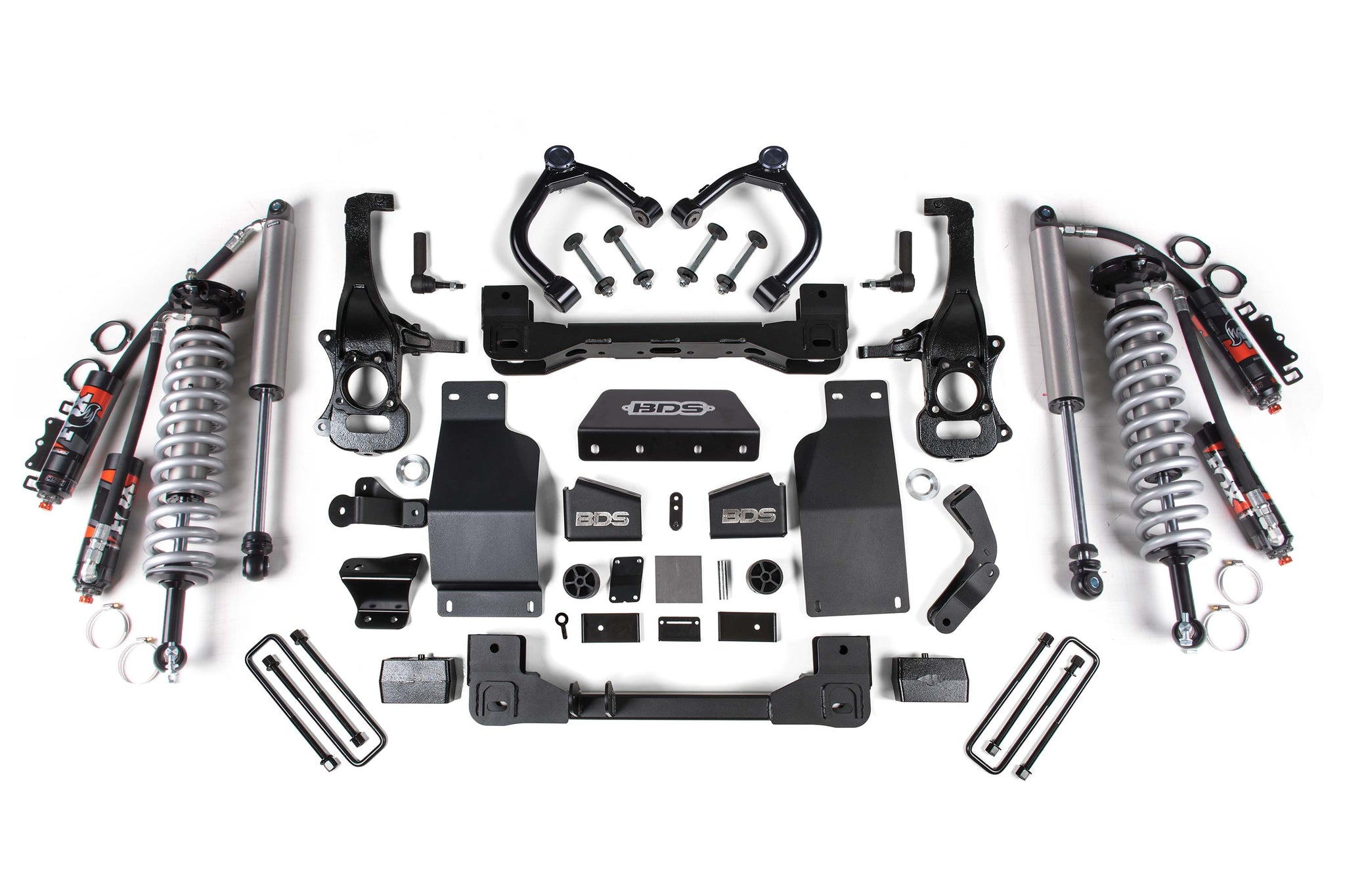 Up the ante in performance with your Chevy Silverado and GMC Sierra 1500 truck by installing the BDS 4-inch lift kit suspension featuring FOX 2.5 Performance Elite coil-over shocks. Designed to improve stance, performance, and capability, this kit includes everything necessary to set your truck up right with clearance for up to 33" tires. These kits feature proprietary FOX 2.5 coil-over shocks designed specifically to bolt-on performance for increase travel and the ability to soak up the roughest terrain along with smooth on-road comfort.
