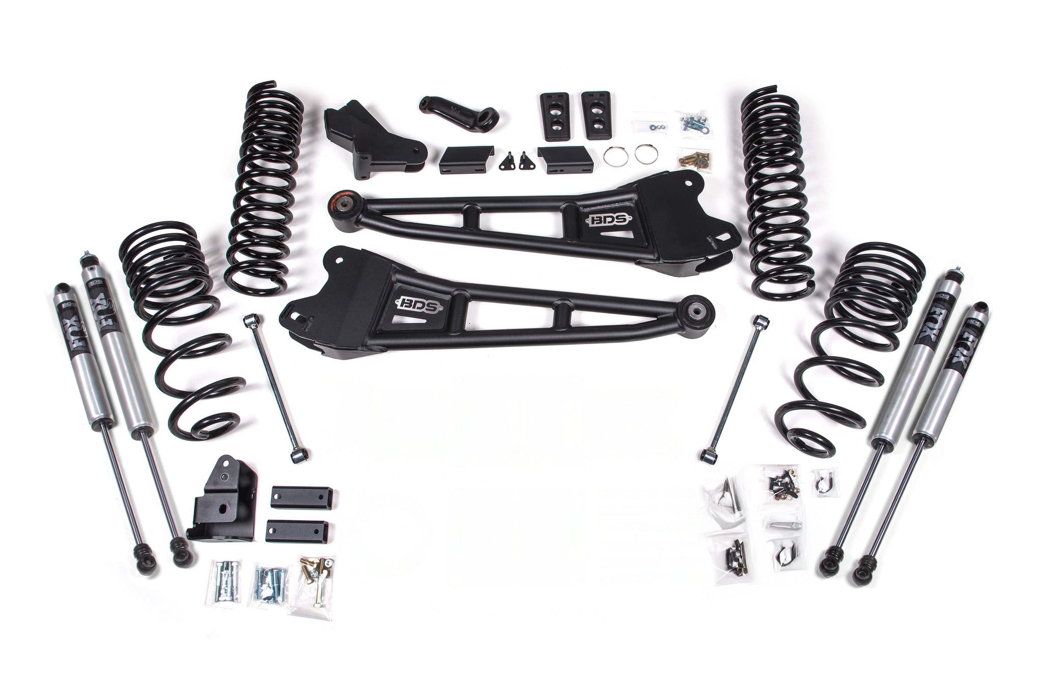 Built for durability and precision, it features heavy-duty Zone Offroad Radius Arms, a forged pitman arm, and your choice of high-performance shocks—Zone Nitro or Fox 2.0 Adventure Series. Designed for standard travel, this system doesn't require a transfer case indexing ring or crossmember, simplifying installation.