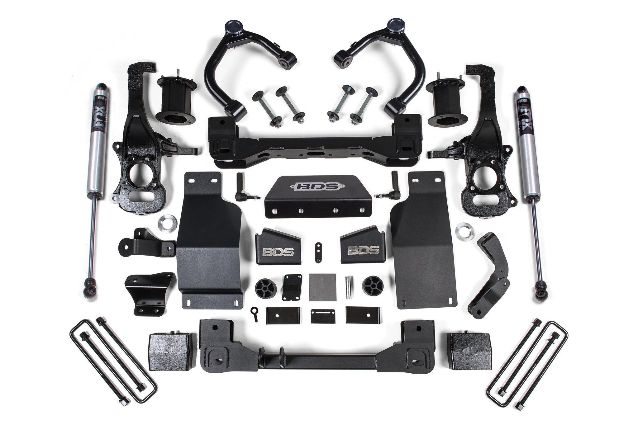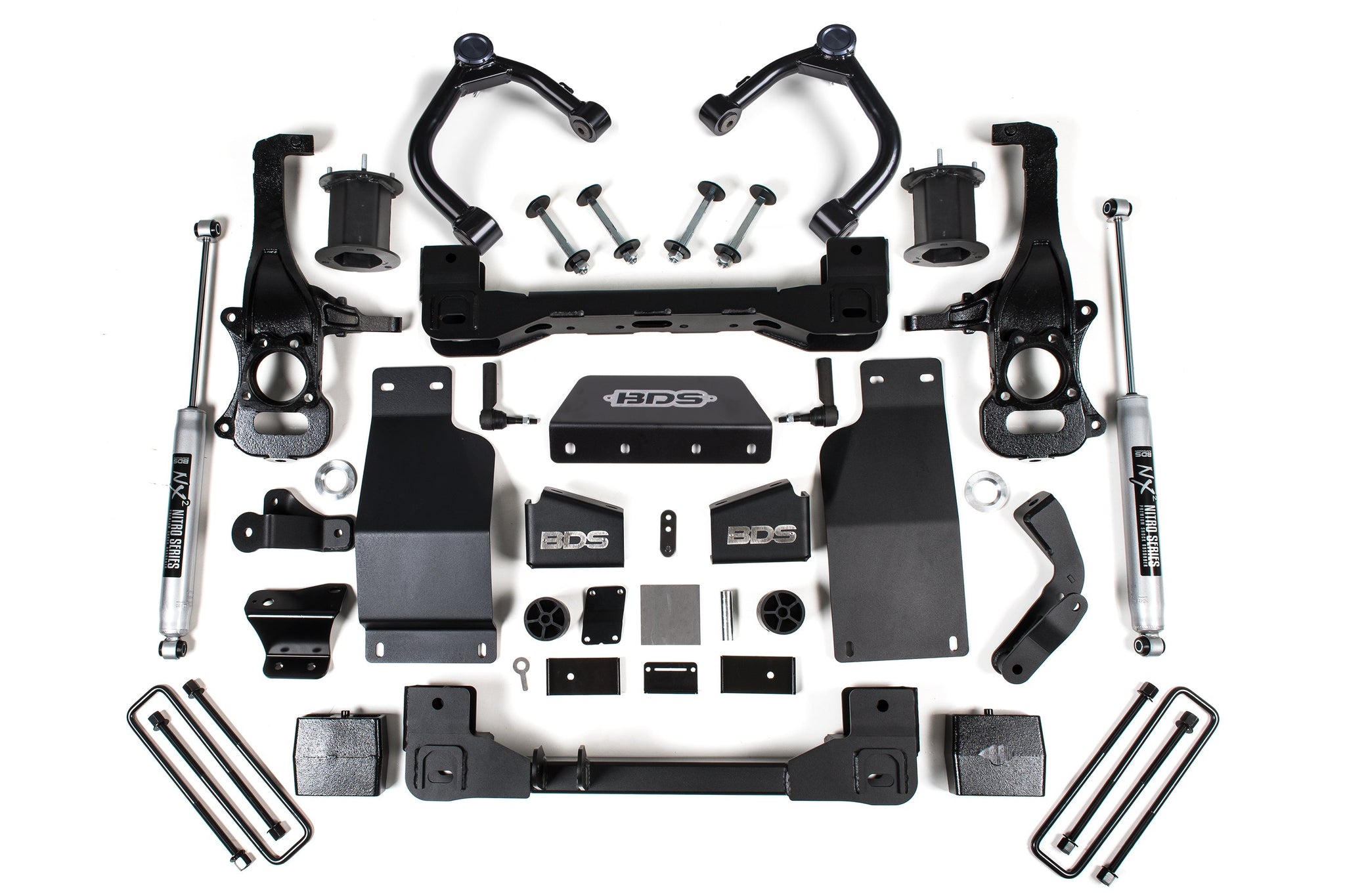 BDS steps up the performance and capability of the Chevy Silverado and GMC Sierra 1500 trucks with 6-inch suspension lift kit. Designed to improve stance, performance, and capability, this kit includes everything necessary to set your truck up right with clearance for up to 35" tires