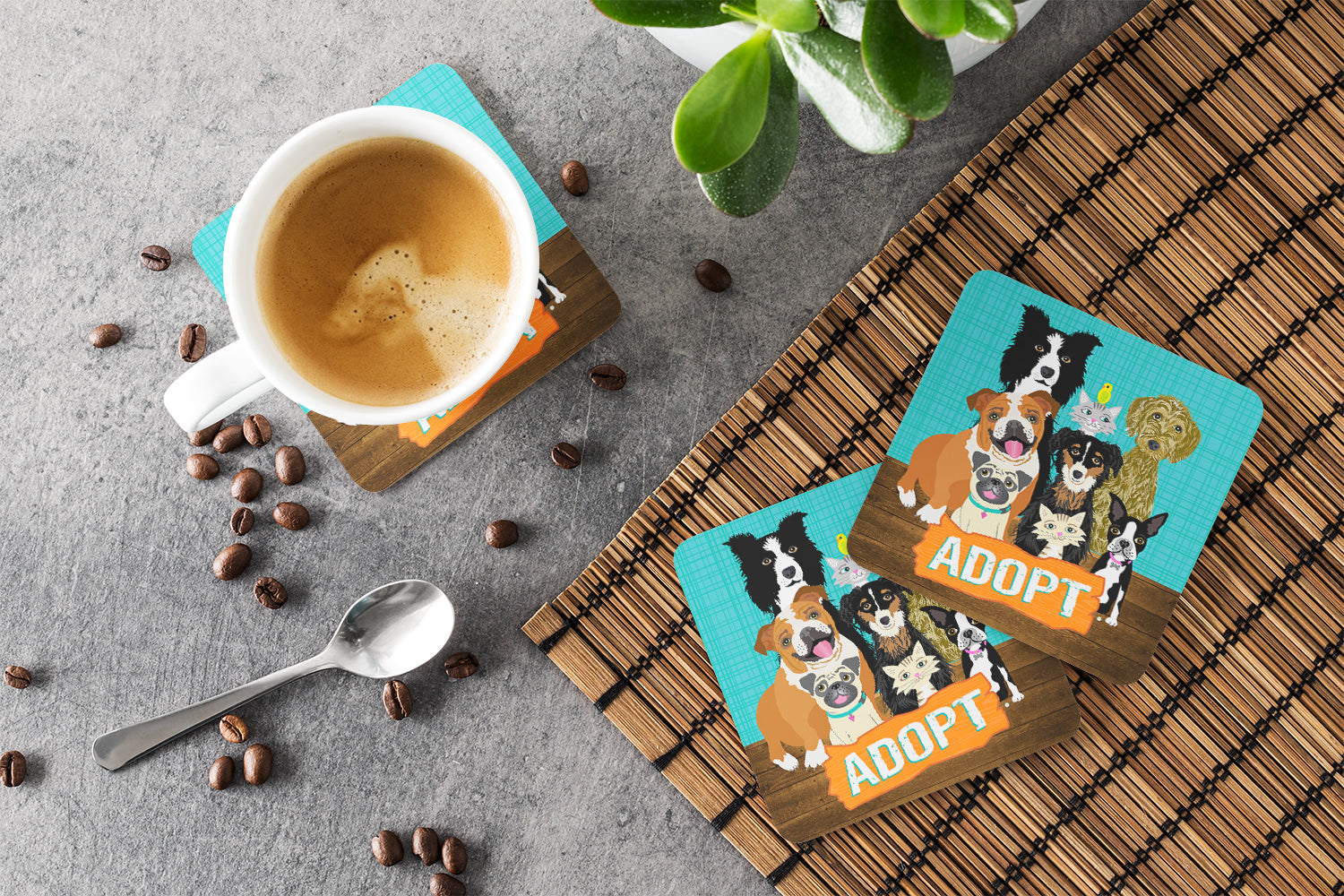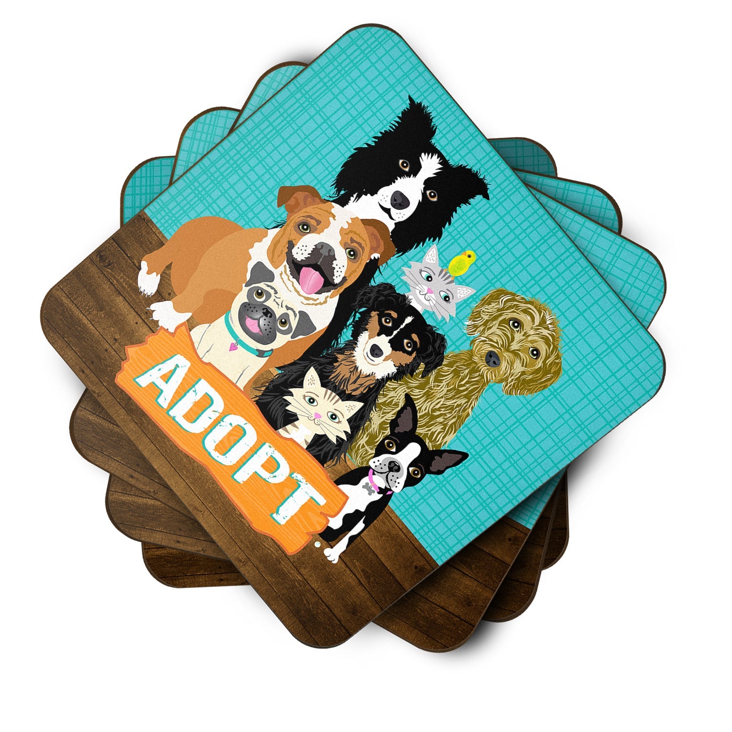 Adopt Pets Adoption Coasters - Set of 4 Lightweight Foam, Absorbent Drink Coasters VHA3007FC