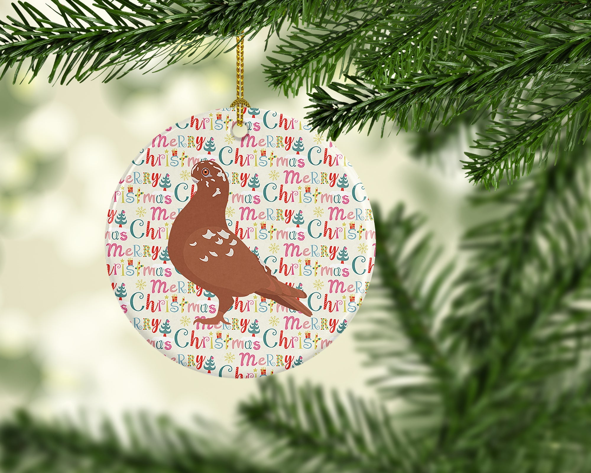 Decorate your space with our Christmas African Owl Pigeon artwork on a Ornament. Add a touch of personalized charm to your Christmas tree this holiday season with our Ceramic Ornament. Measuring 2.8125 inches in diameter, this round porcelain ornament beautifully reflects your festive lights, enhancing your holiday decor. The gloss surface sets off the vibrant, full-color artwork contributed by one of our talented artists, bringing a pop of color and joy to your tree. This Ceramic Ornament doesn't stop at being merely decorative. The white back is designed for personalization. Write a heartfelt message, mark a special year, or inscribe a date with a paint pen or a permanent marker to create a treasured memento. Please ensure you allow any personalization to dry thoroughly before handling to maintain the pristine finish. Included with the ornament is a delicate gold cord for easy hanging. Made in the USA, this Ceramic Ornament makes an exceptional gift for a pet sitter, teacher, family member, or anyone you wish to share a little Christmas magic with. With its blend of style, charm, and personal touch, it's a meaningful addition to any Christmas tree.