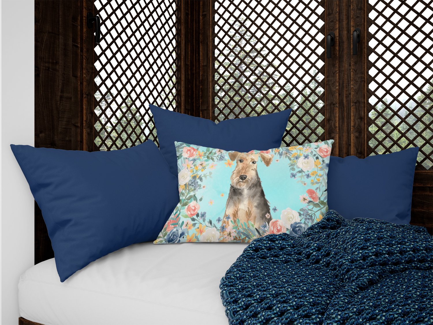 Decorate your space with our Airedale Terrier artwork on a Pillow. Embrace the fusion of comfort and style with Caroline's Treasures Fabric Decorative Pillow. This 12x16 inch outdoor pillow is designed to complement your patio furniture, adding a splash of color and artistry to your outdoor setting. Constructed with a 100% Polyester Fabric pillow sham filled with a plush pillow form, this cushion is as comfortable as it is durable. Our outdoor pillow utilizes a novel fabric, meticulously woven for enhanced water resistance. This soft canvas material is equally suited for your indoor couch as well as outdoor settings such as the patio, porch, or veranda. To ensure enduring vibrance, we employ colorfast dyes resistant to fading even when subjected to weather elements. The making of this pillow involves the delicate sewing together of three fabric pieces to create a sham, into which a polyester insert is carefully placed. The result is an overstuffed pillow that tenaciously holds its shape. With both the sham and the pillow insert crafted in the United States, these handmade pillows are a testament to superior local craftsmanship. Note that as these pillows are handmade, sizes may slightly vary, enhancing their unique appeal. Enjoy comfort in style with Caroline's Treasures Fabric Decorative Pillow.