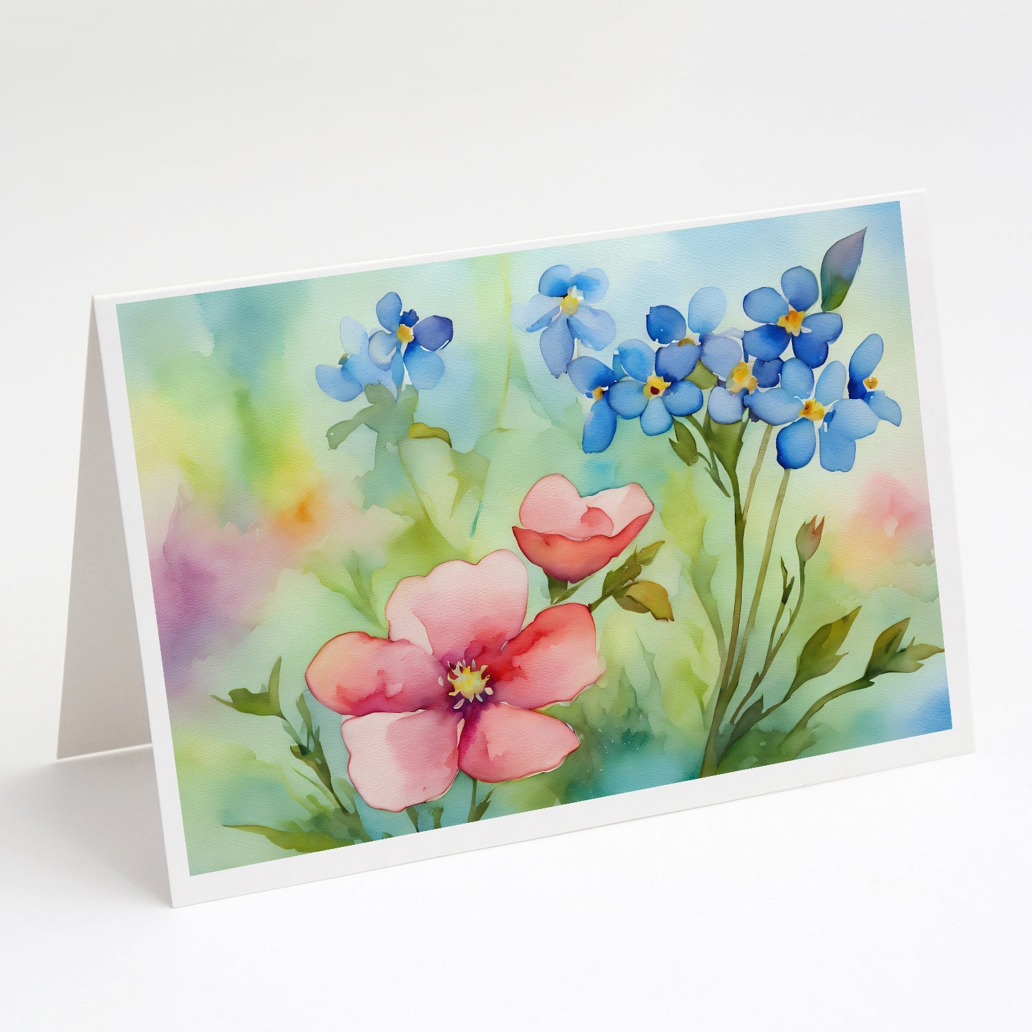 Decorate your space with our Alaska Forget-me-nots artwork on a . Celebrate special moments with Caroline's Treasures Printed Greeting Card Pack. This pack includes eight beautifully folded 5x7 cards, accompanied by eight matching white envelopes. With blank interiors, these cards provide ample space for your personalized messages and heartfelt holiday greetings. Each card features captivating full-color artwork, meticulously printed in our facility on high-quality 80 lb cover stock or 216 GSM. The super smooth finish of the white cards enhances the visual impact of the artwork, creating a truly stunning presentation. Designed by our talented in-house artists or licensed artists, the artwork on these cards showcases their creativity and attention to detail. From vibrant illustrations to captivating designs, each card tells its own unique story. Whether it's for birthdays, anniversaries, holidays, or any special occasion, Caroline's Treasures Greeting Card Pack is the perfect way to convey your heartfelt sentiments. Share joy, love, and warm wishes with these exquisite cards and make every moment unforgettable.