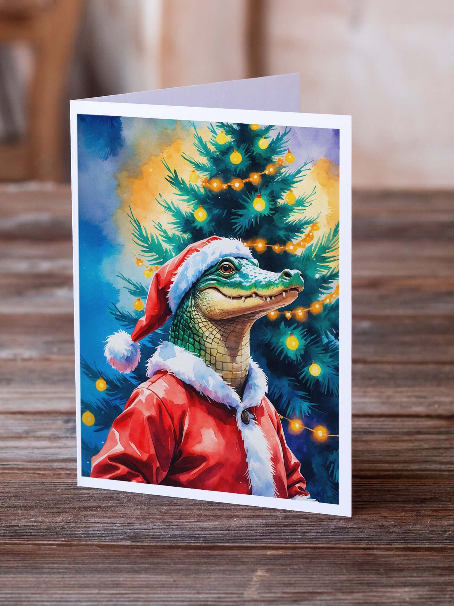 Greeting Cards Pack of 8 featuring breed specific Alligator artwork. Celebrate Christmas with this Christmas . Celebrate special moments with Caroline's Treasures Printed Greeting Card Pack. This pack includes eight beautifully folded 5x7 cards, accompanied by eight matching white envelopes. With blank interiors, these cards provide ample space for your personalized messages and heartfelt holiday greetings. Each card features captivating full-color artwork, meticulously printed in our facility on high-quality 80 lb cover stock or 216 GSM. The super smooth finish of the white cards enhances the visual impact of the artwork, creating a truly stunning presentation. Designed by our talented in-house artists or licensed artists, the artwork on these cards showcases their creativity and attention to detail. From vibrant illustrations to captivating designs, each card tells its own unique story. Whether it's for birthdays, anniversaries, holidays, or any special occasion, Caroline's Treasures Greeting Card Pack is the perfect way to convey your heartfelt sentiments. Share joy, love, and warm wishes with these exquisite cards and make every moment unforgettable.