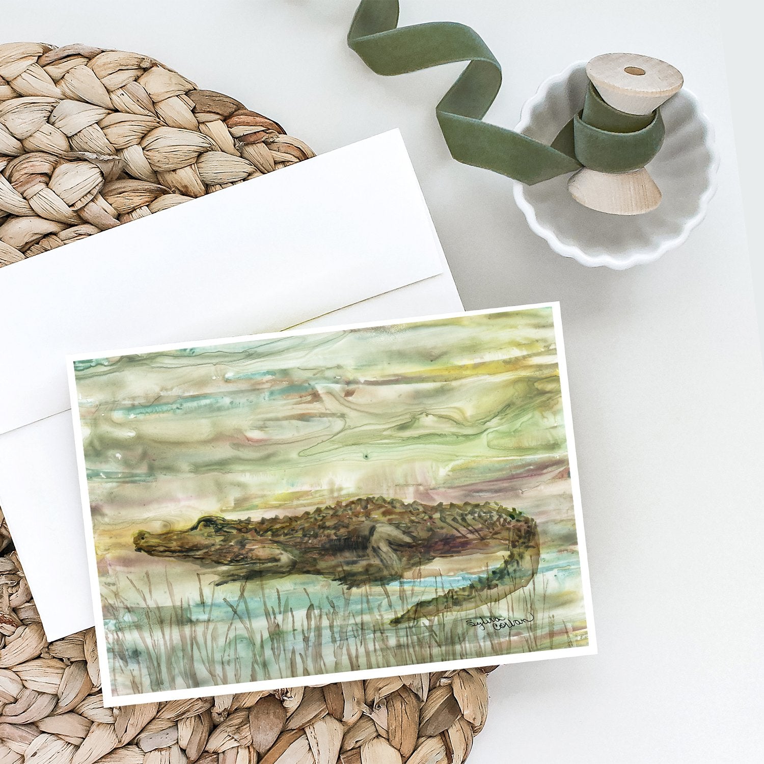 Alligator Sunset Greeting Cards - Blank Note Cards – 8-Pack of Artist-Designed Cards with Envelopes