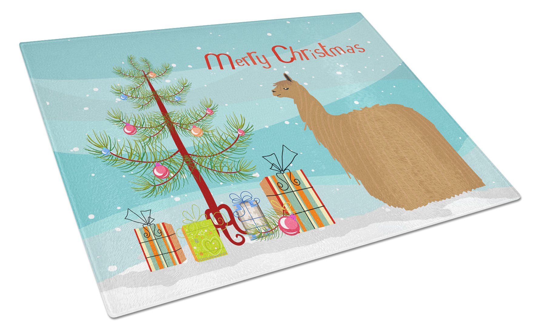 Decorate your space with our Christmas Alpaca Suri artwork on a Cutting Board. Introduce your kitchen to the vibrant, large Decorative Glass Cutting Board from Caroline's Treasures. Crafted from resilient tempered glass, this board is not only a utilitarian necessity but also a colorful art piece. With its generous dimensions of 15 inches in height and 12 inches in length, it offers ample space for all your cutting needs. Every piece showcases captivating artwork from distinguished artists, bringing an aesthetic edge to your kitchen. Beyond its attractive design, this cutting board ensures your countertop stays pristine and unscathed, owing to its heat-resistant properties. Engineered with user convenience in mind, it features non-skid feet for stability, and rounded corners for additional safety. Its robust construction renders it virtually unbreakable, guaranteeing longevity. The board comes with protective feet bumpers, maintaining its position during use. This product is recommended to be hand washed only. Proudly printed and assembled in the United States, this cutting board exemplifies superior craftsmanship. With Caroline's Treasures' Decorative Glass Cutting Board, you're investing in a blend of functionality and artistic flair.