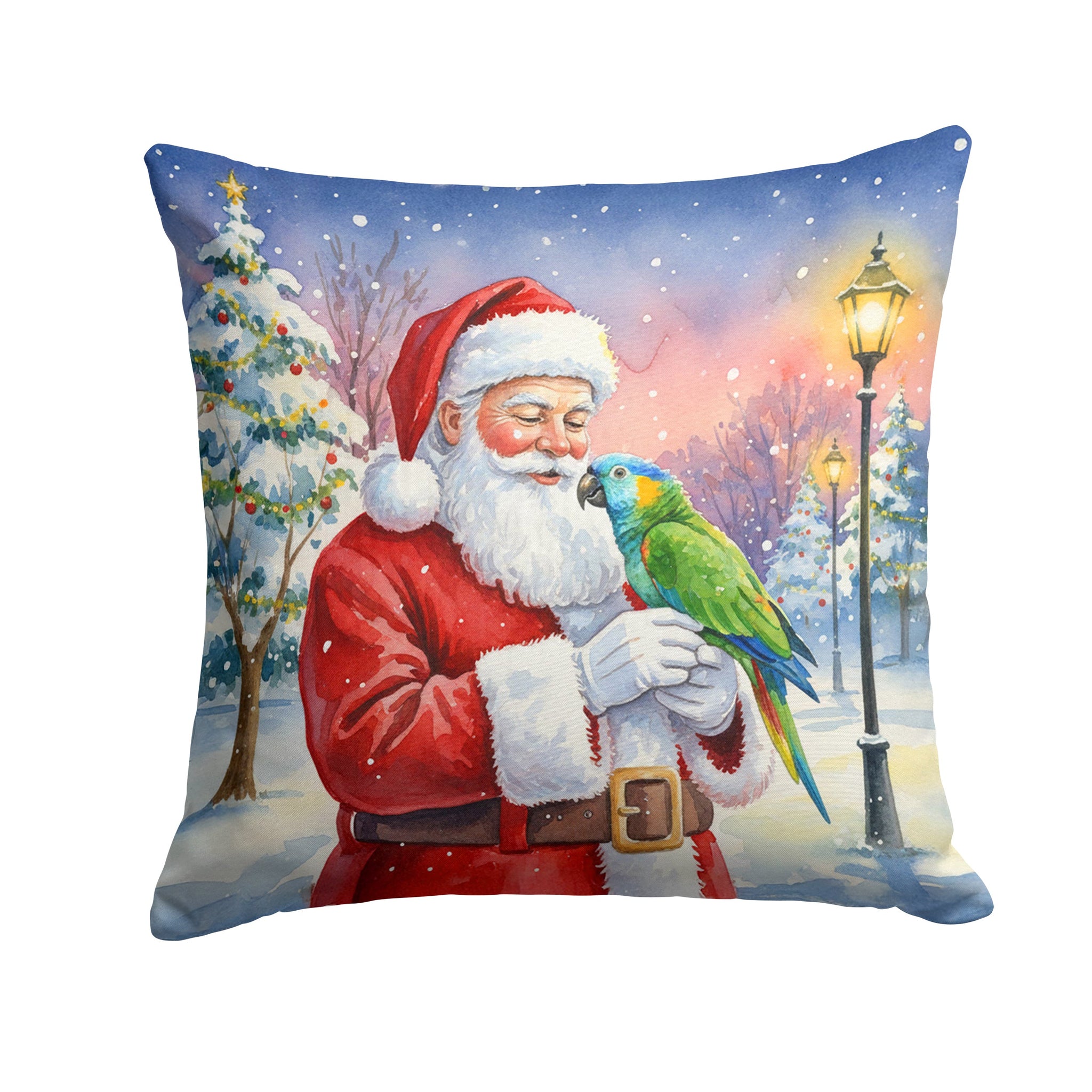 Throw Pillow featuring breed specific Amazon Parrot artwork. Celebrate Christmas with this Christmas Pillow. Revitalize your outdoor or indoor living space with Caroline's Treasures 18x18 Fabric Decorative Pillow. With a generously sized dimension of approximately 18 inches by 18 inches, this pillow makes a comfortable and aesthetic addition to any seating area. Made from a unique, water-resistant material developed by Caroline's Treasures, the pillow sham is 100% polyester fabric that's durable and ready to weather any condition. Its vibrant, full-color artwork will not fade over time as it is dyed with color-fast dyes. Whether you place it on your patio furniture, porch, veranda, or indoor couch, its soft canvas fabric ensures a cozy experience. The pillow is handcrafted in the United States, featuring a sham created from three pieces of fabric and a polyester insert for enduring shape and overstuffed comfort. Despite being robustly built to endure the outdoors, it is as soft and snug as your favorite indoor cushions. Please note, as all our pillows are handmade, sizes may vary slightly, adding to the charm of this unique decorative item.