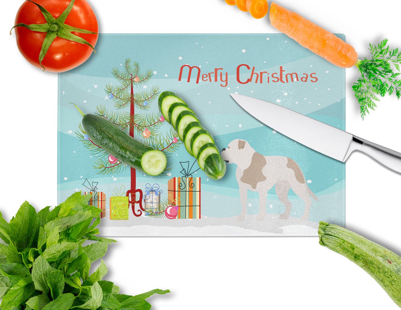 American Bulldog Christmas Glass Cutting Boards – Durable, Decorative Kitchen Art Large BB8510LCB