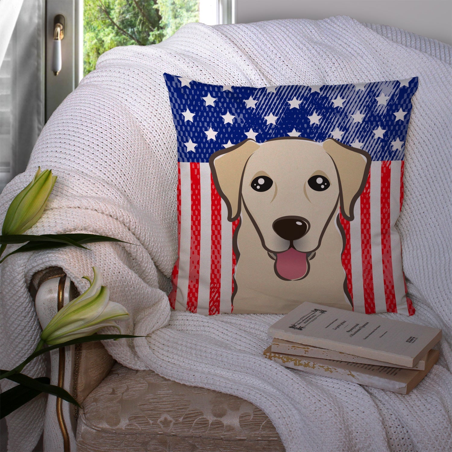 Decorate your space with our Golden Retriever artwork on a Pillow. Add a touch of vibrancy and comfort to your outdoor seating with Caroline's Treasures Fabric Decorative Pillow. Measuring approximately 14 inches by 14 inches, this outdoor pillow is crafted to elevate the appeal of your patio furniture, infusing it with vivid color and artistic flair. The pillow includes a 100% Polyester Fabric sham filled with a quality pillow form to provide superior comfort. Innovatively made from our brand new material, specifically woven for its water resistance, this pillow is designed for durability. The soft canvas fabric offers versatility in use, fit for your indoor couch or your outdoor patio, porch, or veranda. The fabric is dyed with colorfast dyes built for resilience against weather conditions, ensuring the pillow retains its beauty over time. Constructed by sewing three fabric pieces to create a sham, the polyester insert is then nestled inside to form the pillow, resulting in an overstuffed pillow that maintains its shape. Both the sham and the pillow insert are proudly made in the United States. As the pillows are handcrafted, there may be minor variations in size, further enhancing their unique charm. Experience comfort in style with Caroline's Treasures Fabric Decorative Pillow.