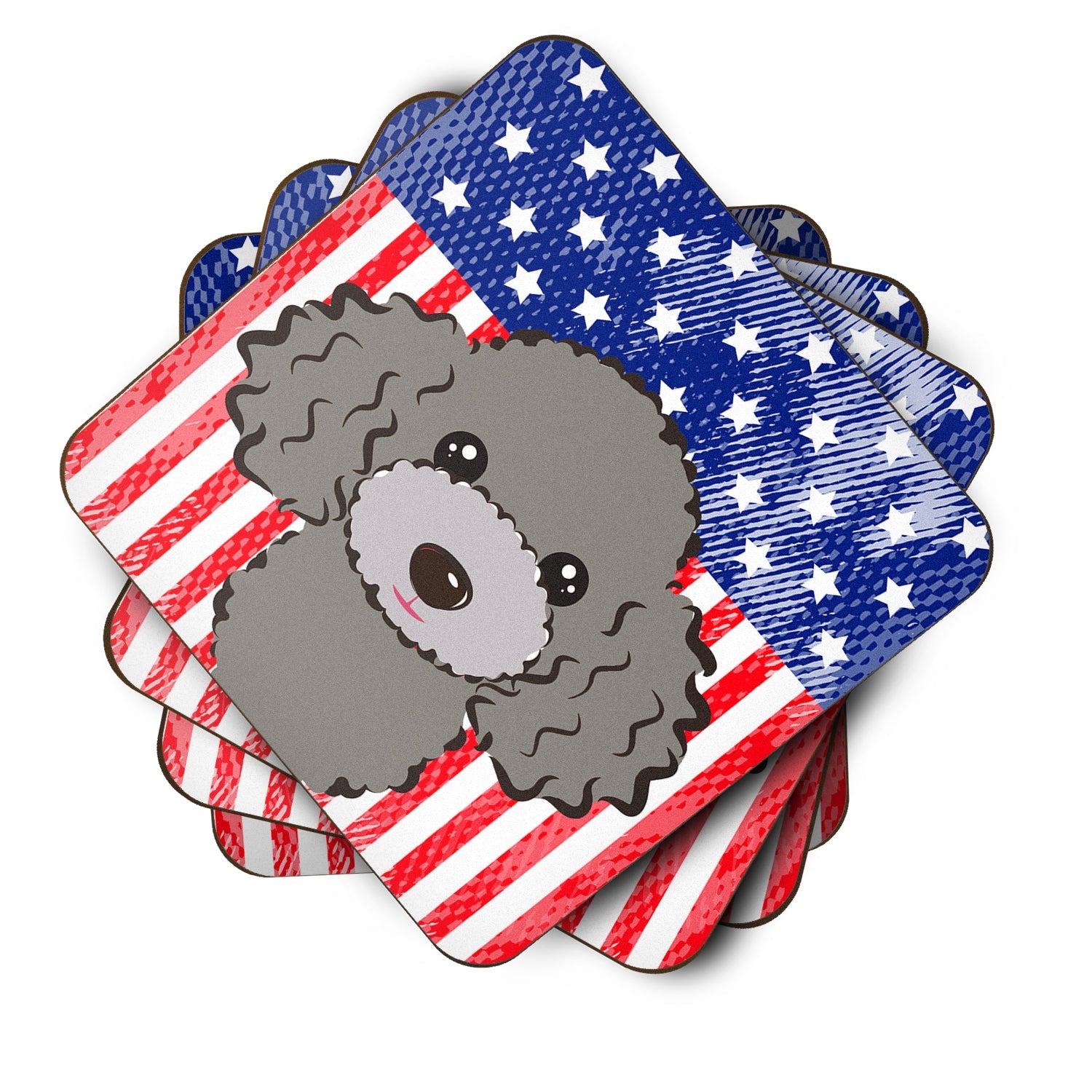 Decorate your space with our Poodle artwork on a Coaster set. Presenting our Set of 4 Foam Coasters, a stylish and practical addition to your table setting. Each square coaster, measuring 3 1/2 inches by 3 1/2 inches, is perfectly sized to accommodate various drinkware, from coffee mugs to tumblers. These coasters stand out with their full-color artwork, permanently dyed onto the material for a vibrant and fade-resistant finish. They're not just functional, they're a fashionable statement, adding a touch of flair to any gathering or event. Our foam coasters serve a dual purpose - they protect your table from water stains and are perfect for both hot and cold drinks. The material used is similar to that of our high-quality mouse pads, ensuring durability and heat resistance. These coasters are easy to maintain - simply wash them in the top of your dishwasher and lay flat to dry. The design won't come off, ensuring they retain their vivid colors for years. Pair them with one of our insulated coolers or huggers for a cohesive, thoughtful gift set. Enhance your beverage experience with our Set of 4 Foam Coasters.