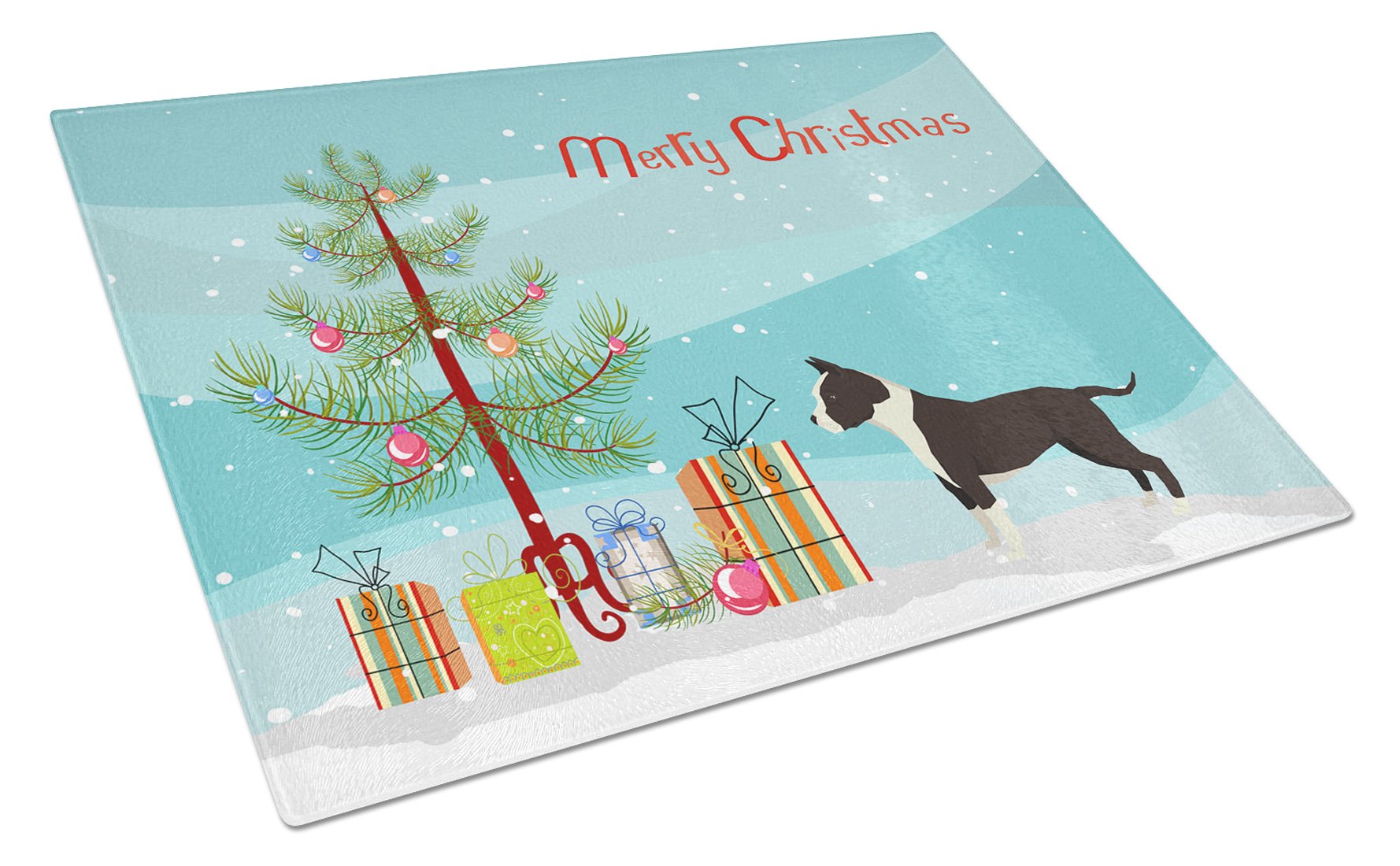 Decorate your space with our Christmas Staffordshire Bull Terrier artwork on a Cutting Board. Introduce your kitchen to the vibrant, large Decorative Glass Cutting Board from Caroline's Treasures. Crafted from resilient tempered glass, this board is not only a utilitarian necessity but also a colorful art piece. With its generous dimensions of 15 inches in height and 12 inches in length, it offers ample space for all your cutting needs. Every piece showcases captivating artwork from distinguished artists, bringing an aesthetic edge to your kitchen. Beyond its attractive design, this cutting board ensures your countertop stays pristine and unscathed, owing to its heat-resistant properties. Engineered with user convenience in mind, it features non-skid feet for stability, and rounded corners for additional safety. Its robust construction renders it virtually unbreakable, guaranteeing longevity. The board comes with protective feet bumpers, maintaining its position during use. This product is recommended to be hand washed only. Proudly printed and assembled in the United States, this cutting board exemplifies superior craftsmanship. With Caroline's Treasures' Decorative Glass Cutting Board, you're investing in a blend of functionality and artistic flair.