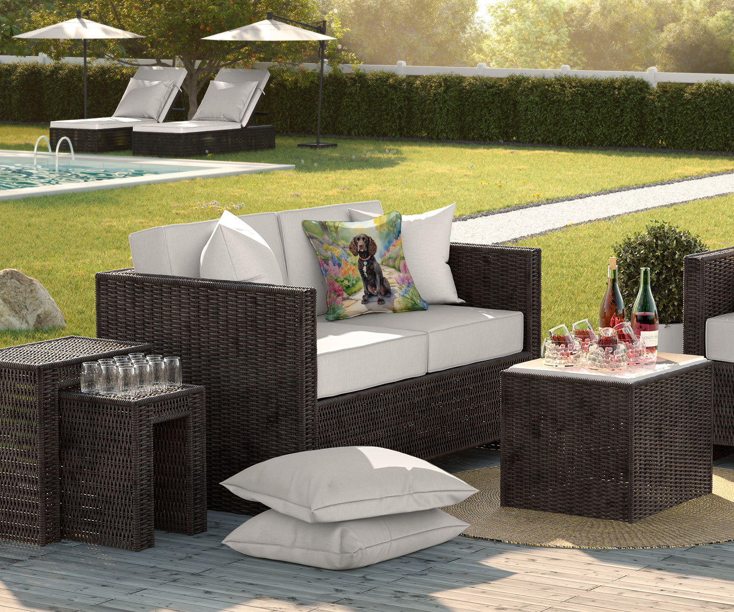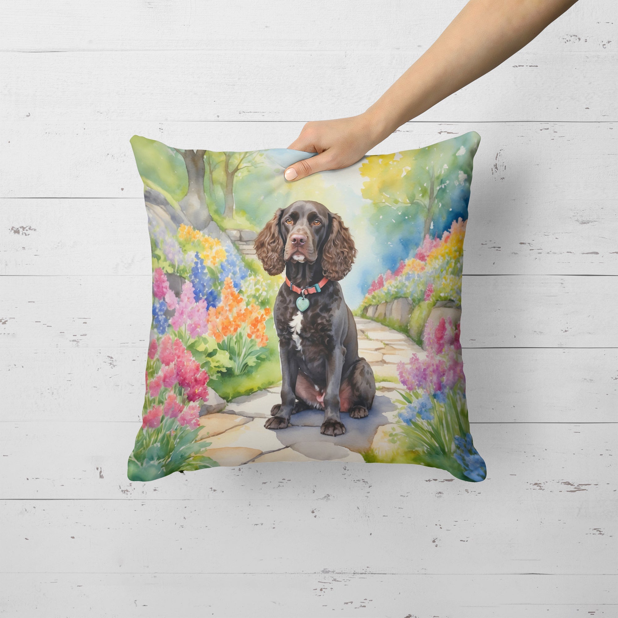 Decorate your space with our American Water Spaniel artwork on a Pillow. Bring a bit of Spring into your home with a Spring Pillow. Revitalize your outdoor or indoor living space with Caroline's Treasures 18x18 Fabric Decorative Pillow. With a generously sized dimension of approximately 18 inches by 18 inches, this pillow makes a comfortable and aesthetic addition to any seating area. Made from a unique, water-resistant material developed by Caroline's Treasures, the pillow sham is 100% polyester fabric that's durable and ready to weather any condition. Its vibrant, full-color artwork will not fade over time as it is dyed with color-fast dyes. Whether you place it on your patio furniture, porch, veranda, or indoor couch, its soft canvas fabric ensures a cozy experience. The pillow is handcrafted in the United States, featuring a sham created from three pieces of fabric and a polyester insert for enduring shape and overstuffed comfort. Despite being robustly built to endure the outdoors, it is as soft and snug as your favorite indoor cushions. Please note, as all our pillows are handmade, sizes may vary slightly, adding to the charm of this unique decorative item.