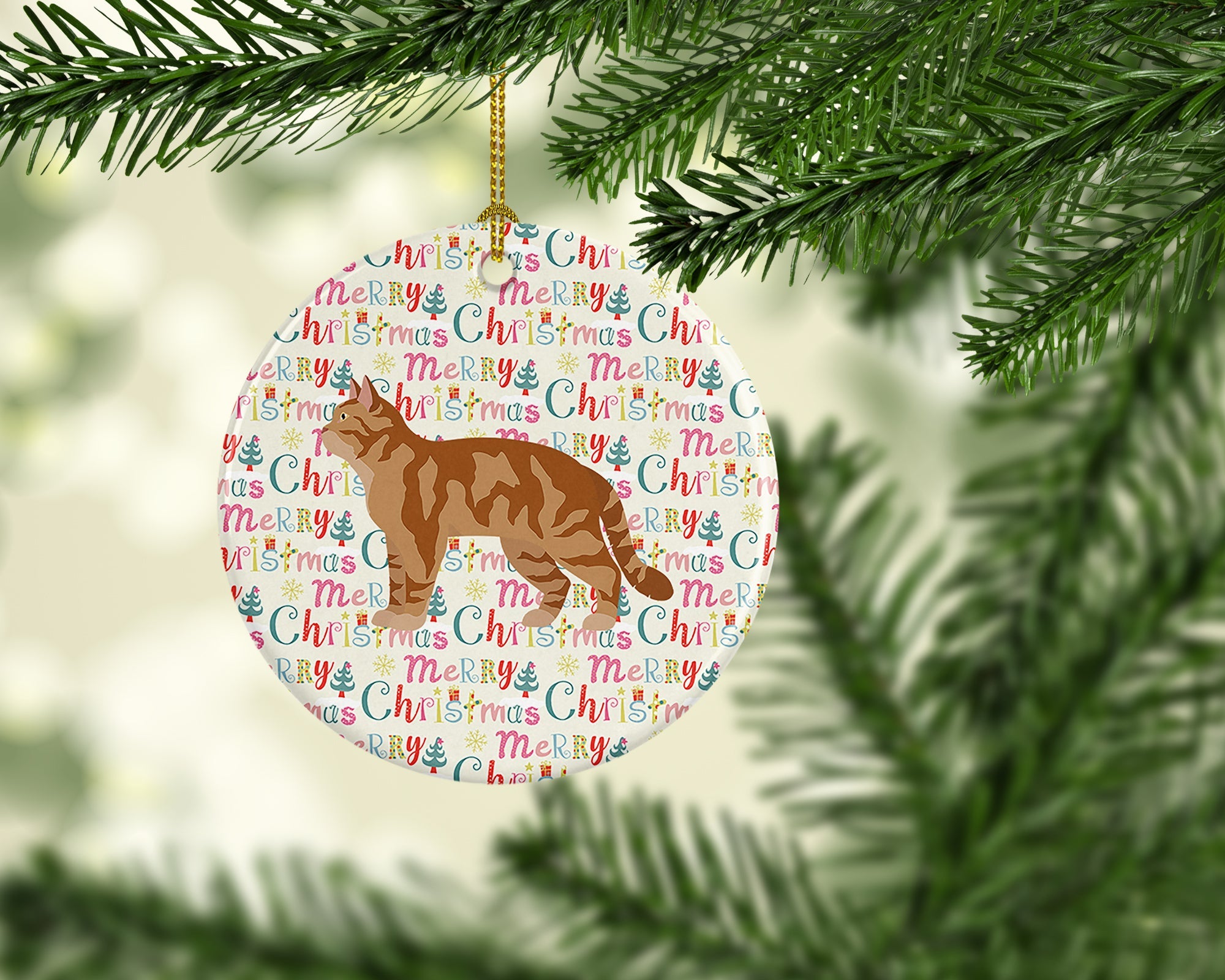 Decorate your space with our Christmas American Wirehair artwork on a Ornament. Add a touch of personalized charm to your Christmas tree this holiday season with our Ceramic Ornament. Measuring 2.8125 inches in diameter, this round porcelain ornament beautifully reflects your festive lights, enhancing your holiday decor. The gloss surface sets off the vibrant, full-color artwork contributed by one of our talented artists, bringing a pop of color and joy to your tree. This Ceramic Ornament doesn't stop at being merely decorative. The white back is designed for personalization. Write a heartfelt message, mark a special year, or inscribe a date with a paint pen or a permanent marker to create a treasured memento. Please ensure you allow any personalization to dry thoroughly before handling to maintain the pristine finish. Included with the ornament is a delicate gold cord for easy hanging. Made in the USA, this Ceramic Ornament makes an exceptional gift for a pet sitter, teacher, family member, or anyone you wish to share a little Christmas magic with. With its blend of style, charm, and personal touch, it's a meaningful addition to any Christmas tree.