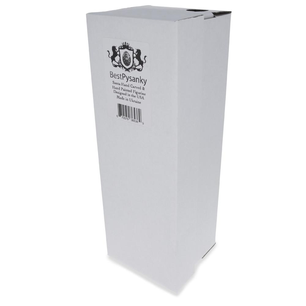 Each figurine is carved entirely from a single piece of wood by a skilled artist in the Mountains of Ukraine. After being shaped, the Santa is passed onto another artist and given life by being carefully painted with vivid details. Each piece is then varnished and signed by the artist on the bottom. This time consuming process makes each figurine unique- no two could ever be the same!