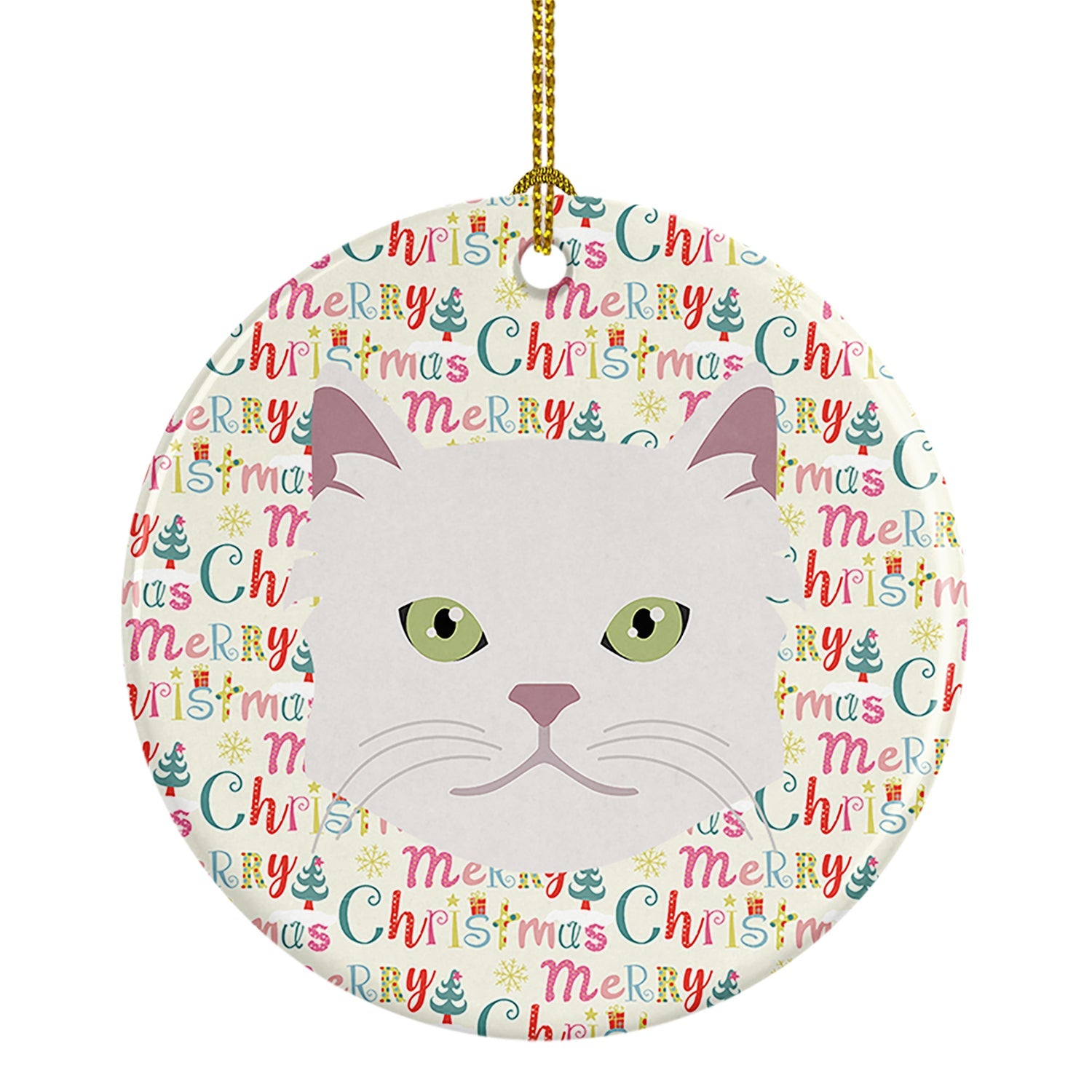 Decorate your space with our Christmas Asian Semi Longhaired Cat artwork on a Ornament. Add a touch of personalized charm to your Christmas tree this holiday season with our Ceramic Ornament. Measuring 2.8125 inches in diameter, this round porcelain ornament beautifully reflects your festive lights, enhancing your holiday decor. The gloss surface sets off the vibrant, full-color artwork contributed by one of our talented artists, bringing a pop of color and joy to your tree. This Ceramic Ornament doesn't stop at being merely decorative. The white back is designed for personalization. Write a heartfelt message, mark a special year, or inscribe a date with a paint pen or a permanent marker to create a treasured memento. Please ensure you allow any personalization to dry thoroughly before handling to maintain the pristine finish. Included with the ornament is a delicate gold cord for easy hanging. Made in the USA, this Ceramic Ornament makes an exceptional gift for a pet sitter, teacher, family member, or anyone you wish to share a little Christmas magic with. With its blend of style, charm, and personal touch, it's a meaningful addition to any Christmas tree.