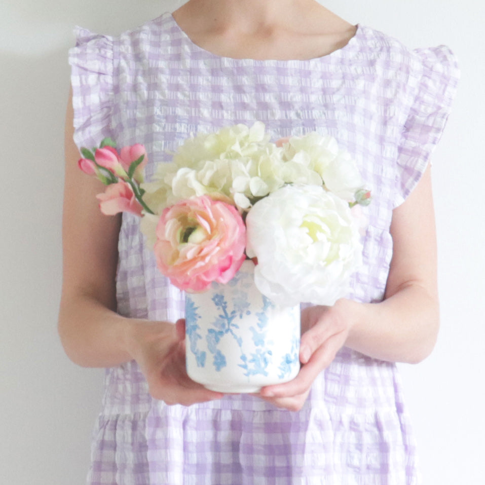 Junior Sandler's iconic artwork takes on the classic "blue and white" pottery staple with a new twist. Sandler perfectly captures the bright and energetic, yet relaxed and breezy spirit of Palm Beach, and we are thrilled to incorporate her work into our multifunctional vases. They can also be used as utensil holders or candle holders.