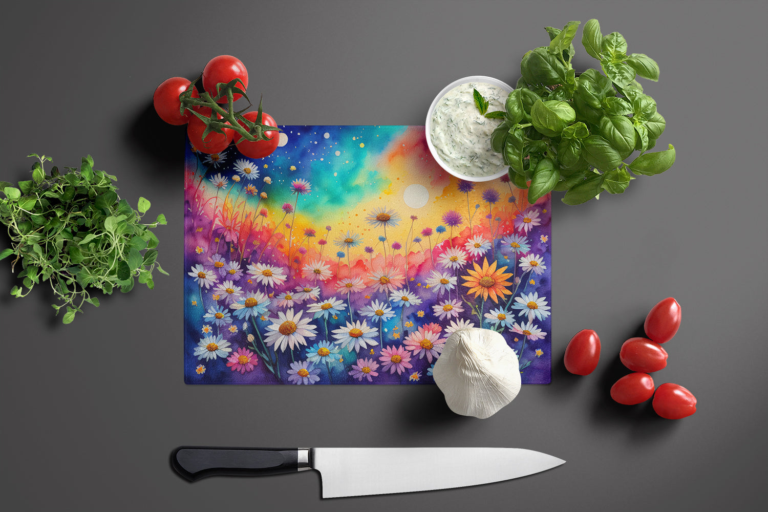 Asters in Color Glass Cutting Boards – Durable, Decorative Kitchen Art Large