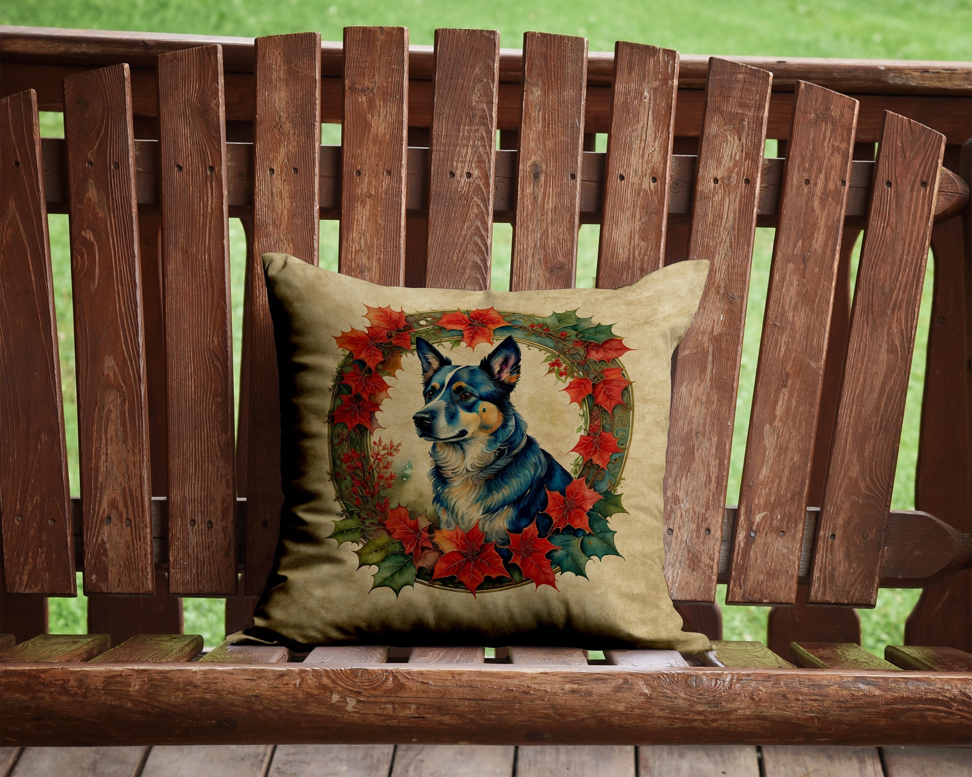 Decorate your space with our Christmas Australian Cattle Dog artwork on a Pillow. Bring a bit of Winter into your home with a Winter Pillow. Add a touch of vibrancy and comfort to your outdoor seating with Caroline's Treasures Fabric Decorative Pillow. Measuring approximately 14 inches by 14 inches, this outdoor pillow is crafted to elevate the appeal of your patio furniture, infusing it with vivid color and artistic flair. The pillow includes a 100% Polyester Fabric sham filled with a quality pillow form to provide superior comfort. Innovatively made from our brand new material, specifically woven for its water resistance, this pillow is designed for durability. The soft canvas fabric offers versatility in use, fit for your indoor couch or your outdoor patio, porch, or veranda. The fabric is dyed with colorfast dyes built for resilience against weather conditions, ensuring the pillow retains its beauty over time. Constructed by sewing three fabric pieces to create a sham, the polyester insert is then nestled inside to form the pillow, resulting in an overstuffed pillow that maintains its shape. Both the sham and the pillow insert are proudly made in the United States. As the pillows are handcrafted, there may be minor variations in size, further enhancing their unique charm. Experience comfort in style with Caroline's Treasures Fabric Decorative Pillow.