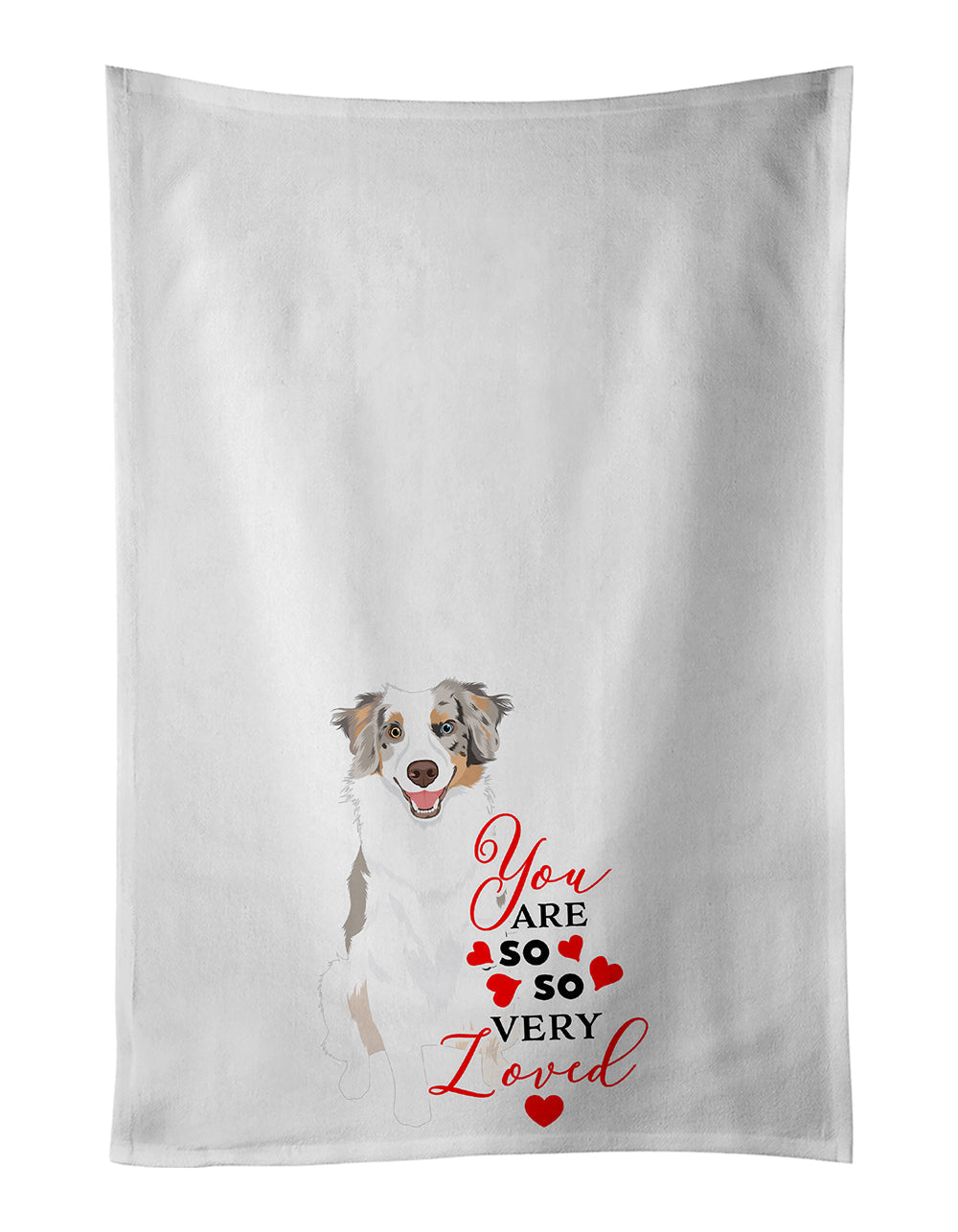 Decorate your space with our Valentine's Day Australian Shepherd artwork on a Kitchen Cotton Towels. Spruce up your kitchen decor with Caroline's Treasures Decorative White Kitchen Towel Set. This set of two dish towels showcases beautiful artwork from one of our talented artists, making them both practical and visually appealing. These towels are crafted from 100% cotton, offering excellent absorbency and durability, making them ideal for any kitchen task. Each white towel measures 19 inches by 28 inches, providing ample coverage for drying dishes or wiping up spills. The standout feature of these towels is the full-color artwork design printed on each one. They can serve as a vibrant accent in your kitchen, turning a functional item into a delightful piece of decor. When it comes to care, these towels are machine washable in cold water and can be dried on low heat. Remember to always use a pressing cloth when pressing the design, and avoid using bleach on the decorated towel. The Decorative White Kitchen Towel Set makes a great gift or a stylish addition to your own kitchen.