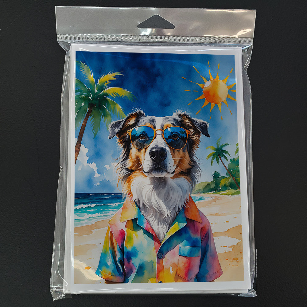 Greeting Cards Pack of 8 featuring breed specific Australian Shepherd artwork. Celebrate special moments with Caroline's Treasures Printed Greeting Card Pack. This pack includes eight beautifully folded 5x7 cards, accompanied by eight matching white envelopes. With blank interiors, these cards provide ample space for your personalized messages and heartfelt holiday greetings. Each card features captivating full-color artwork, meticulously printed in our facility on high-quality 80 lb cover stock or 216 GSM. The super smooth finish of the white cards enhances the visual impact of the artwork, creating a truly stunning presentation. Designed by our talented in-house artists or licensed artists, the artwork on these cards showcases their creativity and attention to detail. From vibrant illustrations to captivating designs, each card tells its own unique story. Whether it's for birthdays, anniversaries, holidays, or any special occasion, Caroline's Treasures Greeting Card Pack is the perfect way to convey your heartfelt sentiments. Share joy, love, and warm wishes with these exquisite cards and make every moment unforgettable.