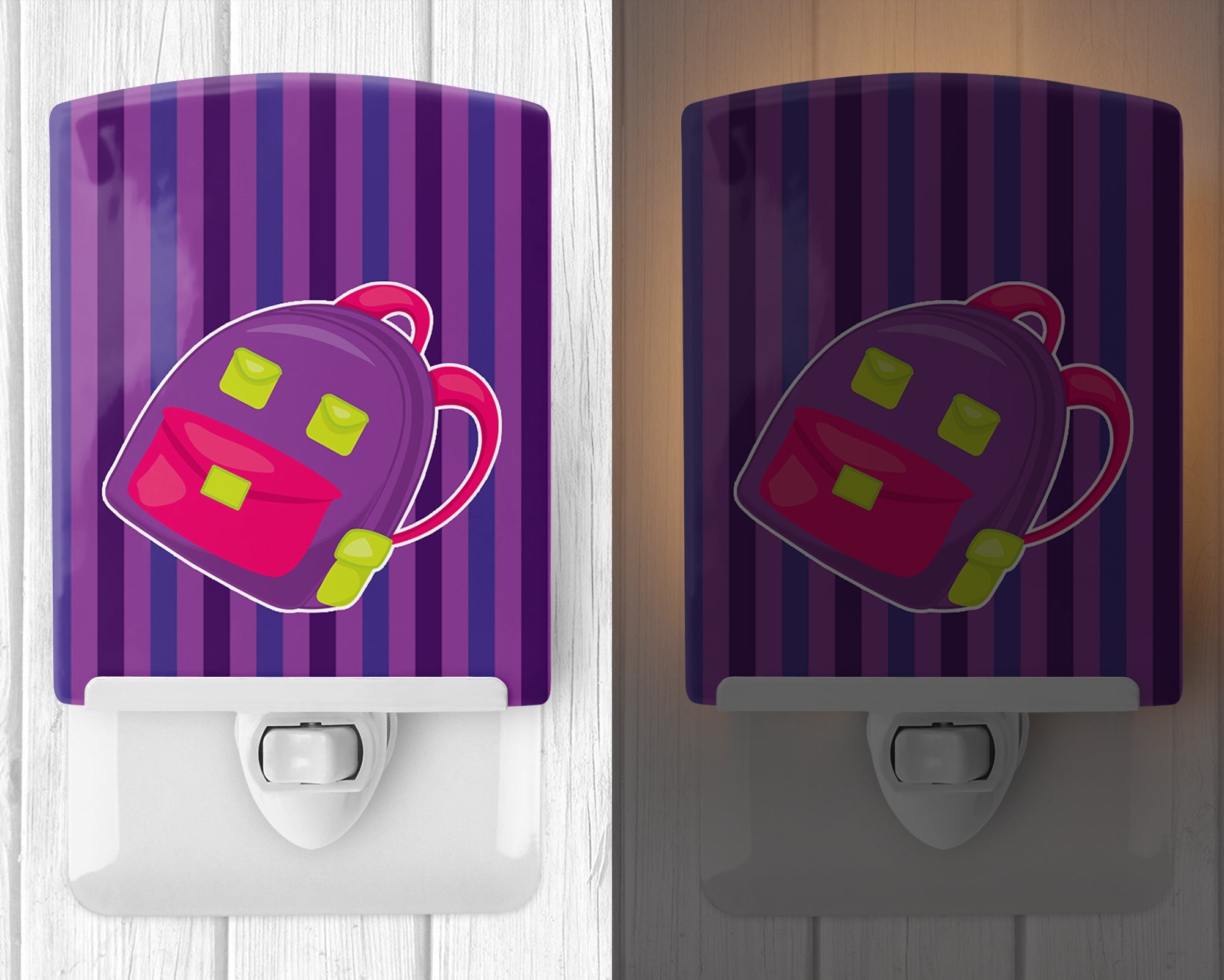 Decorate your space with our Back to School artwork on a Night Light. Introduce a splash of artistic flair and subtle illumination to your space with the Decorative Ceramic Night Light from Caroline's Treasures. Perfect for any room, this night light seamlessly blends functionality with an aesthetic appeal, offering a stylish solution to brighten up dark corners of your home or office. Boasting a six-inch high by four-inch wide ceramic tile at the front, it showcases vivid, full-color artwork from distinguished artists, transforming a simple utility into a vibrant art piece. The artwork is securely encased in a robust metal holder, ensuring durability and longevity. Two screws are provided to firmly affix the tile into the holder. The holder extends three inches deep, housing an included bulb that emits a soft, welcoming glow. This product meets all safety standards, as evidenced by its UL approval. Proudly made in the United States from imported components, this Decorative Ceramic Night Light is not just a functional device; it's a statement piece that enhances the ambiance of your surroundings.