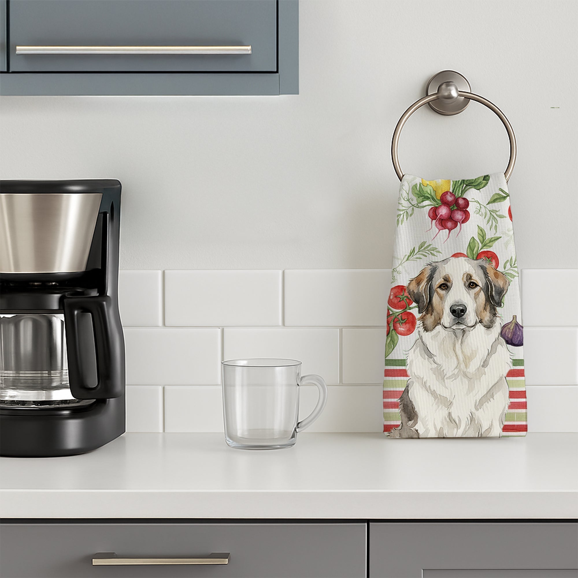 Kitchen Towel featuring breed specific Great Pyrenees artwork. Bring cozy everyday charm to your sink or powder room with a plush velour towel featuring original watercolor artwork. The front is a soft, color-rich minky polyester that polishes glassware to a brilliant shine; the back is 100% white cotton terry loop for quick absorbency on hands, dishes, and counters. Artwork is dyed into the fibers for lasting color that won’t crack or peel. Finished edges keep the shape wash after wash. Size: 15" x 25". Machine wash; tumble dry low. Designed and printed in the USA.