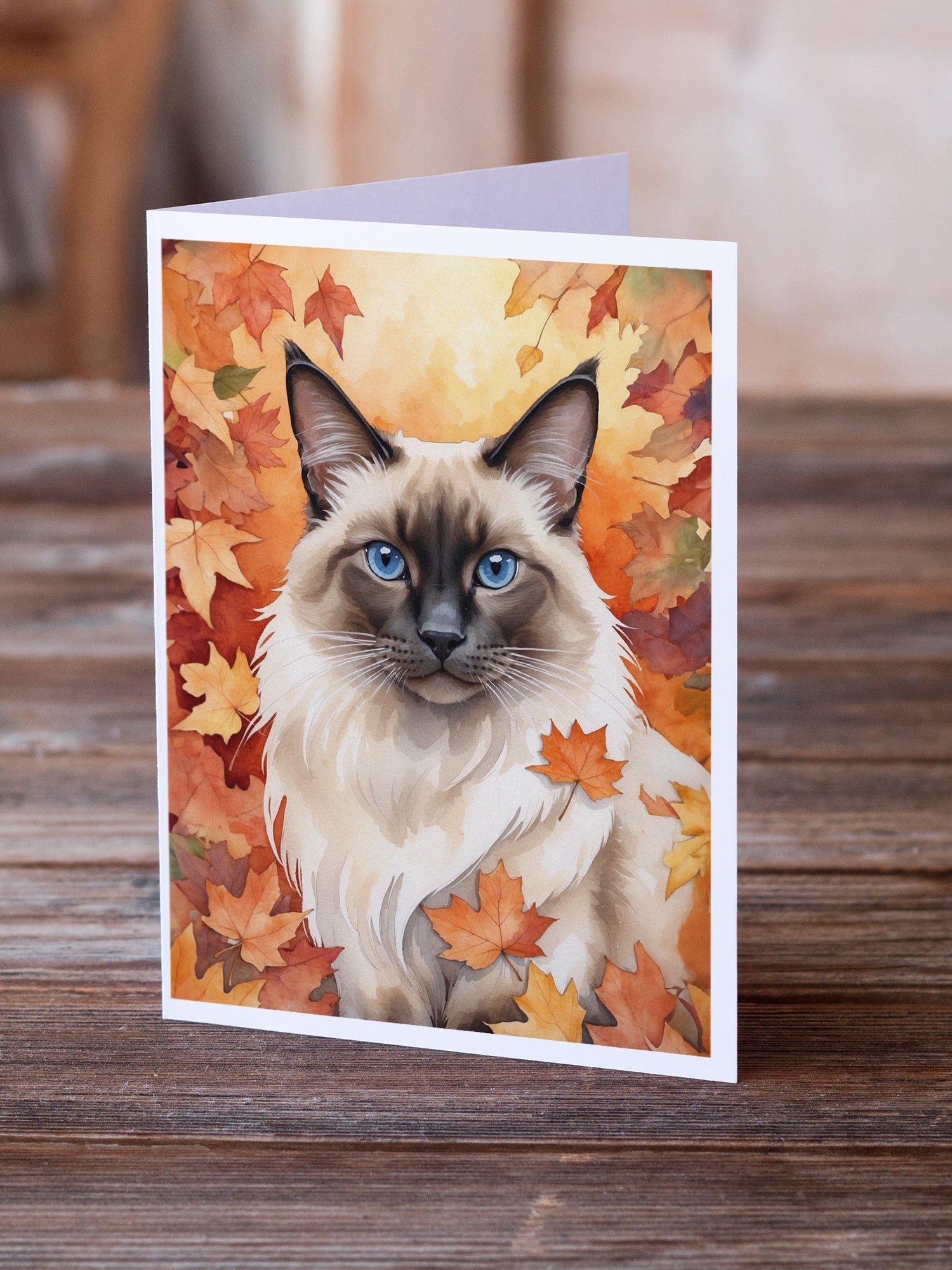 Greeting Cards Pack of 8 featuring breed specific Balinese Cat artwork. Celebrate special moments with Caroline's Treasures Printed Greeting Card Pack. This pack includes eight beautifully folded 5x7 cards, accompanied by eight matching white envelopes. With blank interiors, these cards provide ample space for your personalized messages and heartfelt holiday greetings. Each card features captivating full-color artwork, meticulously printed in our facility on high-quality 80 lb cover stock or 216 GSM. The super smooth finish of the white cards enhances the visual impact of the artwork, creating a truly stunning presentation. Designed by our talented in-house artists or licensed artists, the artwork on these cards showcases their creativity and attention to detail. From vibrant illustrations to captivating designs, each card tells its own unique story. Whether it's for birthdays, anniversaries, holidays, or any special occasion, Caroline's Treasures Greeting Card Pack is the perfect way to convey your heartfelt sentiments. Share joy, love, and warm wishes with these exquisite cards and make every moment unforgettable.