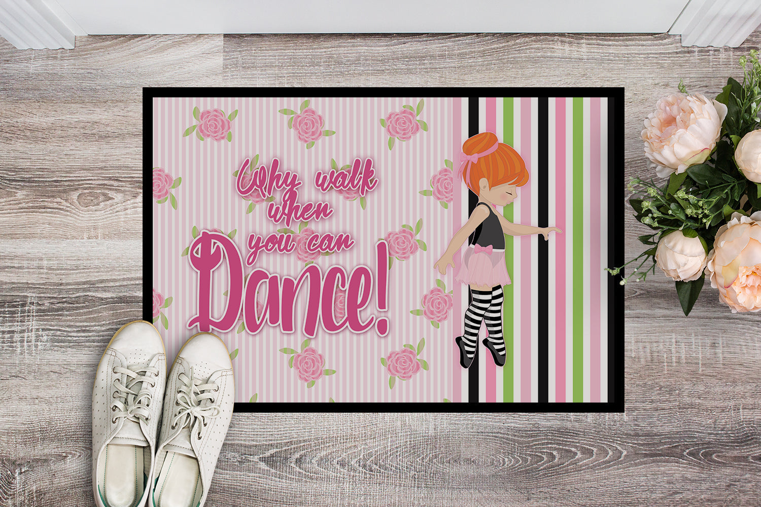 Ballet Dance Stripes Red Hair Doormat - 18x27 Decorative Floor Mat – Indoor/Outdoor Rug with Artistic Flair BB5399MAT