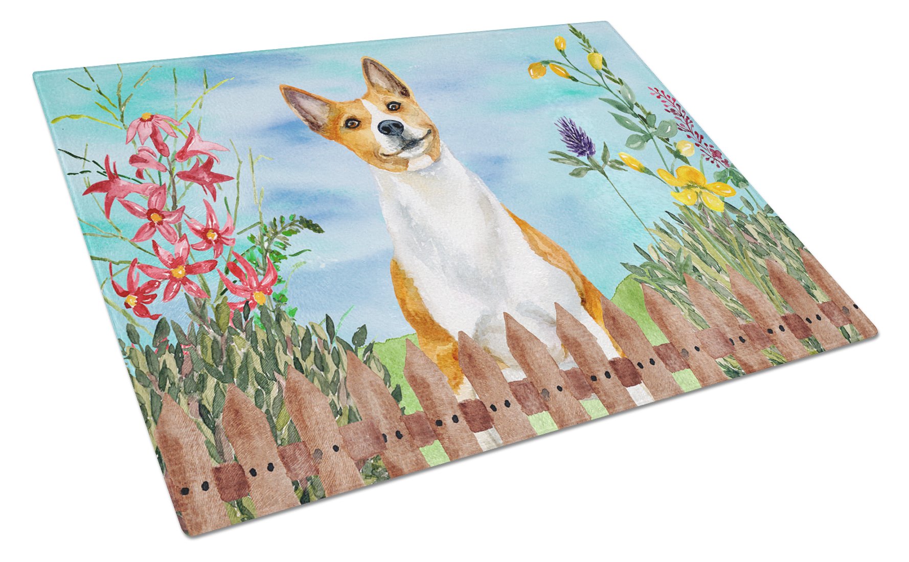 Decorate your space with our Basenji artwork on a Cutting Board. Bring a bit of Spring into your home with a Spring Cutting Board. Introduce your kitchen to the vibrant, large Decorative Glass Cutting Board from Caroline's Treasures. Crafted from resilient tempered glass, this board is not only a utilitarian necessity but also a colorful art piece. With its generous dimensions of 15 inches in height and 12 inches in length, it offers ample space for all your cutting needs. Every piece showcases captivating artwork from distinguished artists, bringing an aesthetic edge to your kitchen. Beyond its attractive design, this cutting board ensures your countertop stays pristine and unscathed, owing to its heat-resistant properties. Engineered with user convenience in mind, it features non-skid feet for stability, and rounded corners for additional safety. Its robust construction renders it virtually unbreakable, guaranteeing longevity. The board comes with protective feet bumpers, maintaining its position during use. This product is recommended to be hand washed only. Proudly printed and assembled in the United States, this cutting board exemplifies superior craftsmanship. With Caroline's Treasures' Decorative Glass Cutting Board, you're investing in a blend of functionality and artistic flair.
