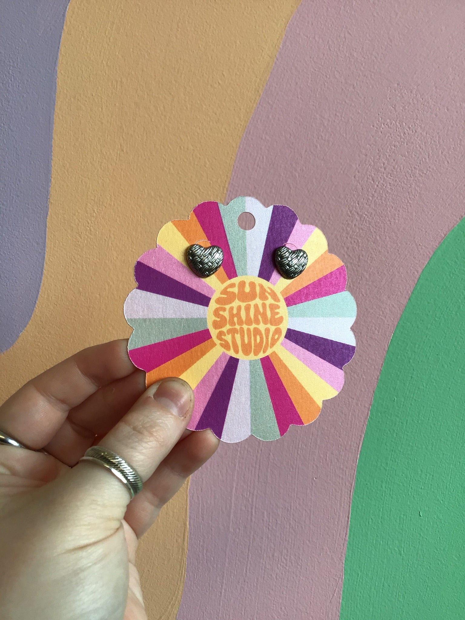 Basket Weave Titanium Heart Studs