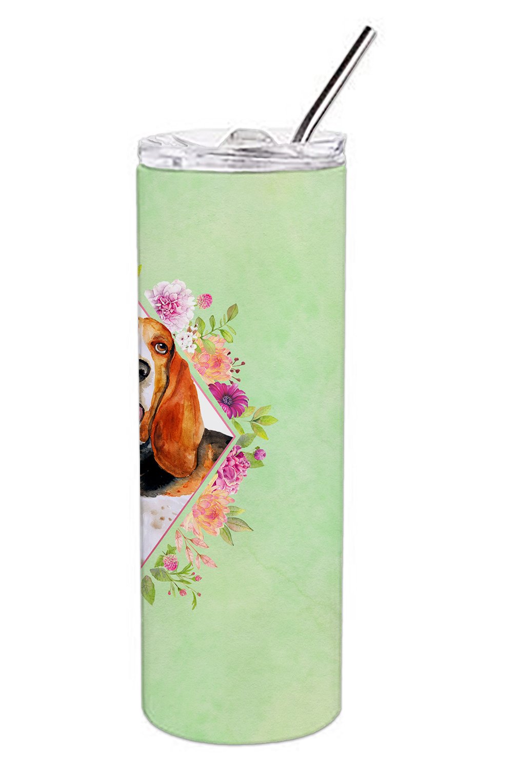 Basset Hound Green Flowers Double Walled Stainless Steel 20 oz Skinny Tumbler CK4276TBL20