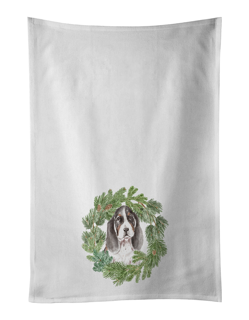 Basset Hound Puppy Tricolor Christmas Wreath White Kitchen Towel Set of 2