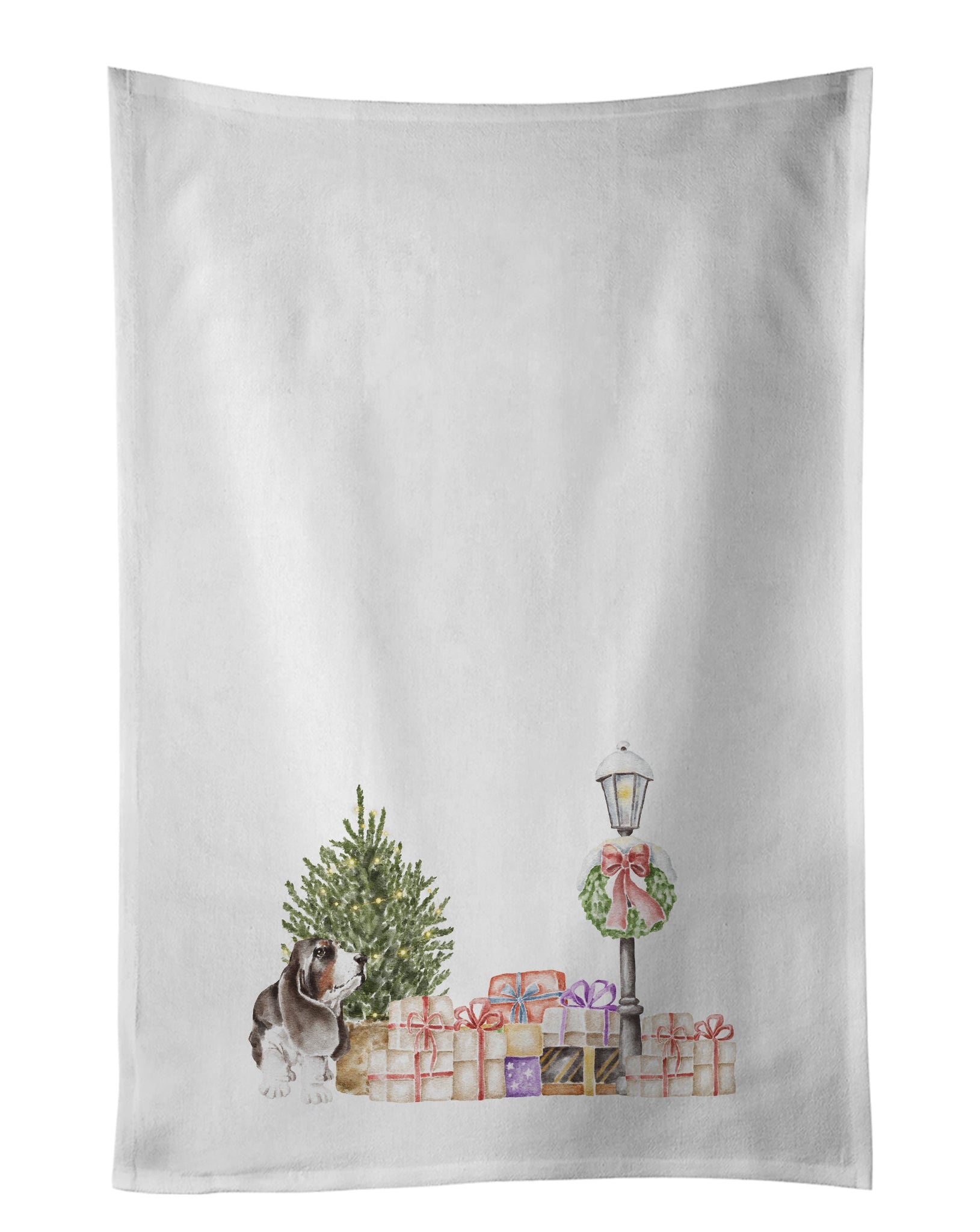 Decorate your space with our Christmas Basset Hound artwork on a Kitchen Cotton Towels. Spruce up your kitchen decor with Caroline's Treasures Decorative White Kitchen Towel Set. This set of two dish towels showcases beautiful artwork from one of our talented artists, making them both practical and visually appealing. These towels are crafted from 100% cotton, offering excellent absorbency and durability, making them ideal for any kitchen task. Each white towel measures 19 inches by 28 inches, providing ample coverage for drying dishes or wiping up spills. The standout feature of these towels is the full-color artwork design printed on each one. They can serve as a vibrant accent in your kitchen, turning a functional item into a delightful piece of decor. When it comes to care, these towels are machine washable in cold water and can be dried on low heat. Remember to always use a pressing cloth when pressing the design, and avoid using bleach on the decorated towel. The Decorative White Kitchen Towel Set makes a great gift or a stylish addition to your own kitchen.