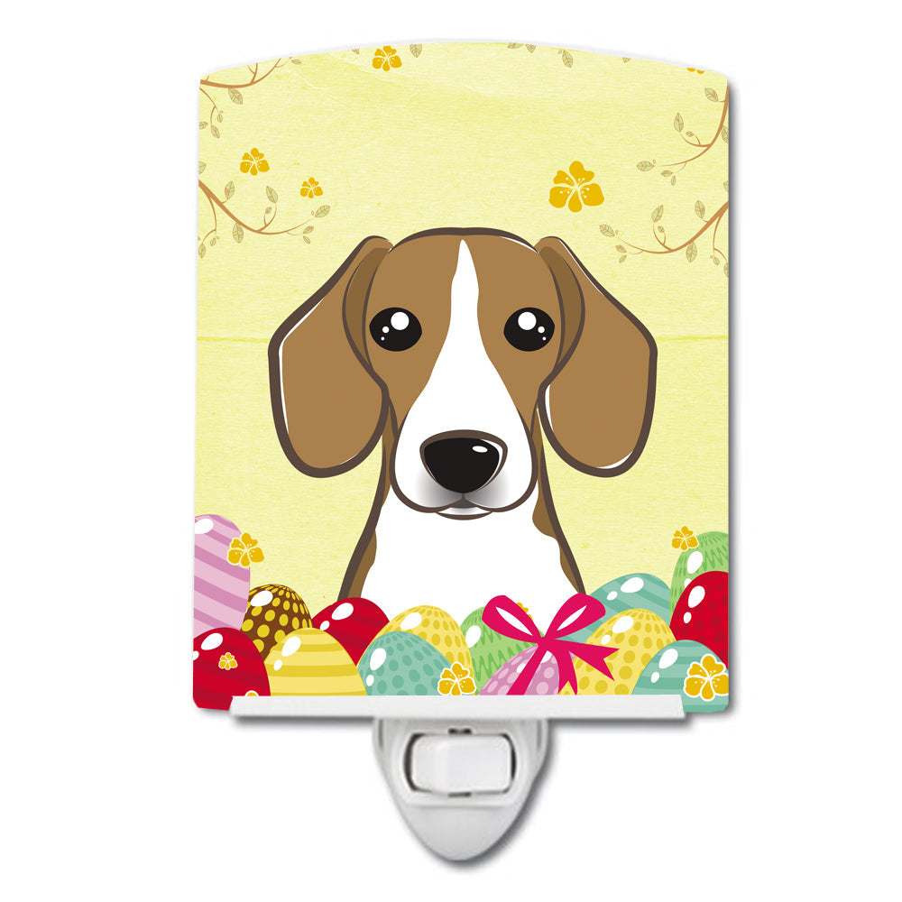 Decorate your space with our Easter Beagle artwork on a Night Light. Introduce a splash of artistic flair and subtle illumination to your space with the Decorative Ceramic Night Light from Caroline's Treasures. Perfect for any room, this night light seamlessly blends functionality with an aesthetic appeal, offering a stylish solution to brighten up dark corners of your home or office. Boasting a six-inch high by four-inch wide ceramic tile at the front, it showcases vivid, full-color artwork from distinguished artists, transforming a simple utility into a vibrant art piece. The artwork is securely encased in a robust metal holder, ensuring durability and longevity. Two screws are provided to firmly affix the tile into the holder. The holder extends three inches deep, housing an included bulb that emits a soft, welcoming glow. This product meets all safety standards, as evidenced by its UL approval. Proudly made in the United States from imported components, this Decorative Ceramic Night Light is not just a functional device; it's a statement piece that enhances the ambiance of your surroundings.