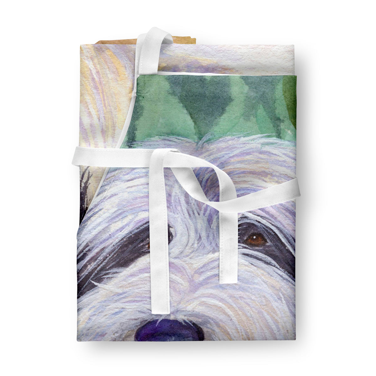 Decorate your space with our Bearded Collie artwork on a Apron. Elevate your cooking, baking, and grilling experiences with our versatile Kitchen or BBQ Apron. This Bib Style apron isn't just limited to culinary activities - it also serves as an excellent baking apron, artist apron, server apron, gardening apron, or even a dog grooming apron. The apron showcases vibrant full-color artwork contributed by one of our talented artists, bringing a dash of style to your daily tasks. With dimensions of approximately 27"W x 30"H, it provides ample coverage to protect your clothing from spills and splashes. Our apron is meticulously crafted from 100% Ultra Spun Polyester, known for its durability and lightweight nature. The apron comes with white tie straps, ensuring a comfortable and adjustable fit for all. It's a perfect choice for kitchen apron enthusiasts, whether you are a woman or a man. Designed for easy maintenance, this apron is fully machine washable. The quick-drying polyester material actively reduces staining, keeping your apron looking fresh and new for longer. Our beautifully designed apron isn't just a functional kitchen accessory - it's a fashion statement in the culinary world!
