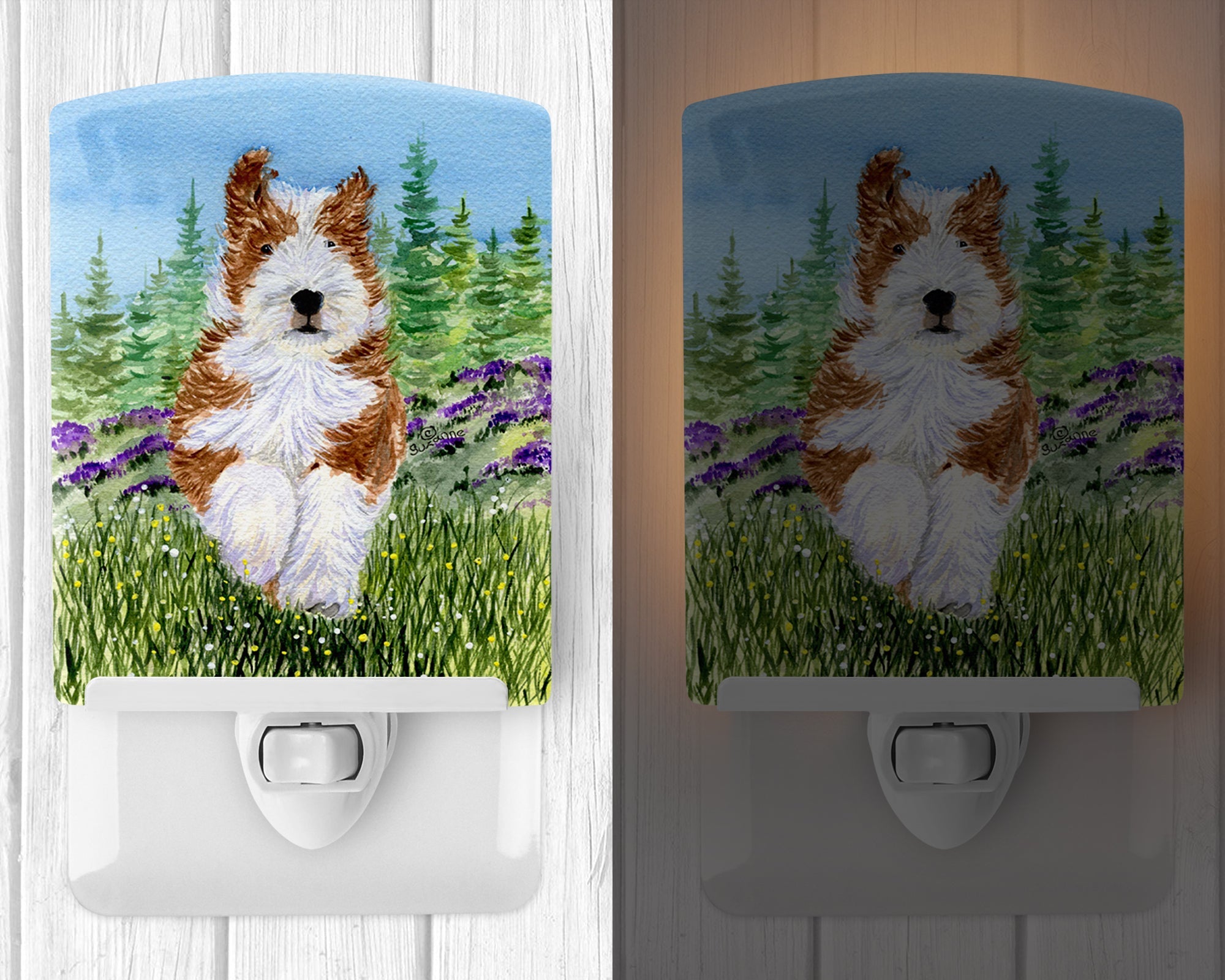 Decorate your space with our Bearded Collie artwork on a Night Light. Introduce a splash of artistic flair and subtle illumination to your space with the Decorative Ceramic Night Light from Caroline's Treasures. Perfect for any room, this night light seamlessly blends functionality with an aesthetic appeal, offering a stylish solution to brighten up dark corners of your home or office. Boasting a six-inch high by four-inch wide ceramic tile at the front, it showcases vivid, full-color artwork from distinguished artists, transforming a simple utility into a vibrant art piece. The artwork is securely encased in a robust metal holder, ensuring durability and longevity. Two screws are provided to firmly affix the tile into the holder. The holder extends three inches deep, housing an included bulb that emits a soft, welcoming glow. This product meets all safety standards, as evidenced by its UL approval. Proudly made in the United States from imported components, this Decorative Ceramic Night Light is not just a functional device; it's a statement piece that enhances the ambiance of your surroundings.