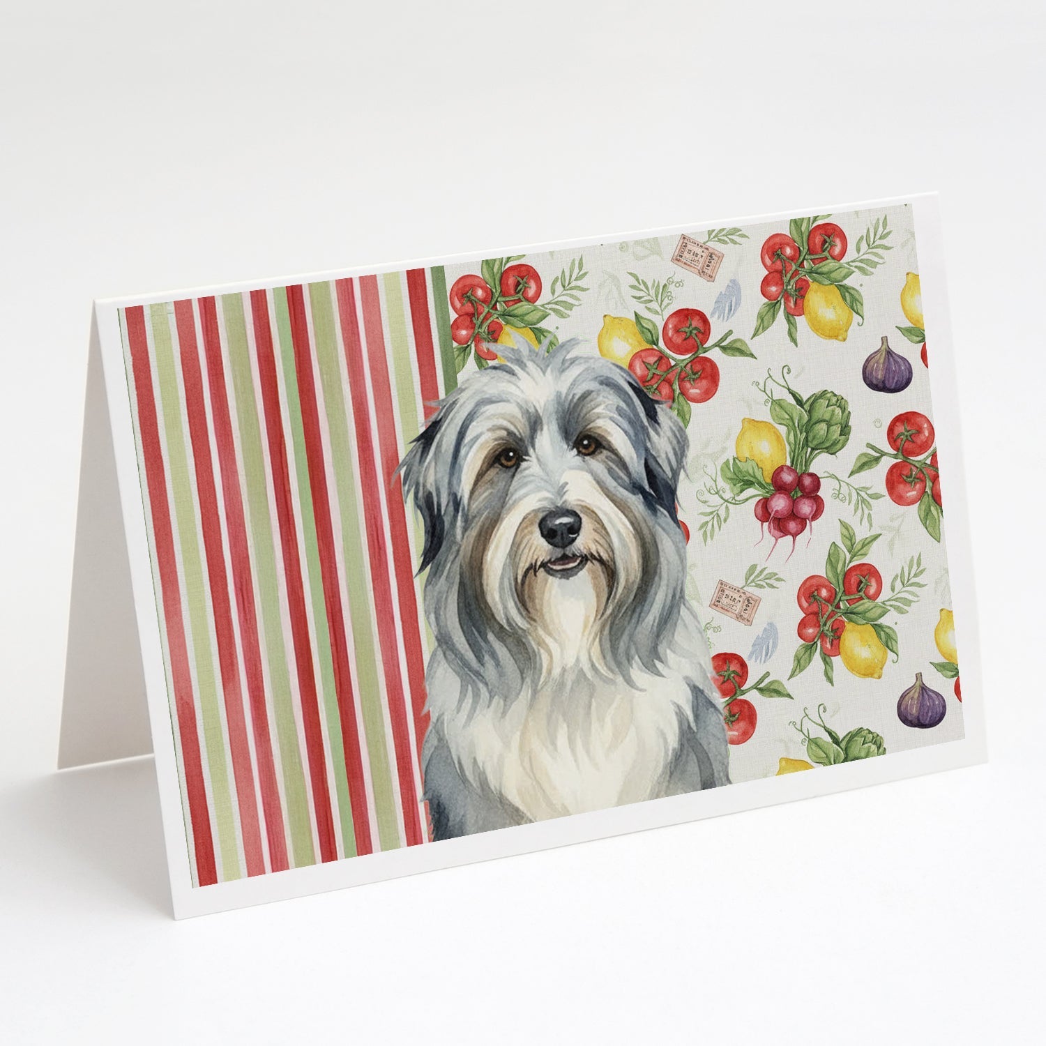 Shown here is the Bearded Collie Vegetables Greeting Cards Pack of 8 from Caroline's Treasures featuring artwork of a Bearded Collie in a Everyday design. The detailed illustration and vibrant colors make it a standout accent that celebrates both seasonal style and love for the subject. This image features a vibrant watercolor vegetable pattern with tomatoes, lemons, artichokes, figs, radishes, and leafy greens arranged in a repeating design, paired with classic red and green stripes. The bright, garden-fresh palette creates a cheerful, farmhouse-inspired look that feels lively, welcoming, and perfect for kitchen décor. Everyday décor celebrates personal style and the small moments that make a house feel like home. Thoughtful designs add warmth and personality that can be enjoyed year-round. Celebrate special moments with Caroline's Treasures Printed Greeting Card Pack. This pack includes eight beautifully folded 5x7 cards, accompanied by eight matching white envelopes. With blank interiors, these cards provide ample space for your personalized messages and heartfelt holiday greetings. Each card features captivating full-color artwork, meticulously printed in our facility on high-quality 80 lb cover stock or 216 GSM. The super smooth finish of the white cards enhances the visual impact of the artwork, creating a truly stunning presentation. Designed by our talented in-house artists or licensed artists, the artwork on these cards showcases their creativity and attention to detail. From vibrant illustrations to captivating designs, each card tells its own unique story. Whether it's for birthdays, anniversaries, holidays, or any special occasion, Caroline's Treasures Greeting Card Pack is the perfect way to convey your heartfelt sentiments. Share joy, love, and warm wishes with these exquisite cards and make every moment unforgettable. Perfect for: Writing personal messages, everyday correspondence, and thoughtful notes, Dogs-themed stationery collections, or year-round use for Bearded Collie lovers. Bearded Collies are energetic herding dogs known for their intelligence and joyful personality. Often called Beardies, this breed is admired for its enthusiasm, loyalty, and strong connection with its family. Makes a heartfelt gift for: Bearded Collie owners, Dogs lovers, Everyday gifts, pet parents, friends who adore their Bearded Collie, or anyone celebrating Dogs.